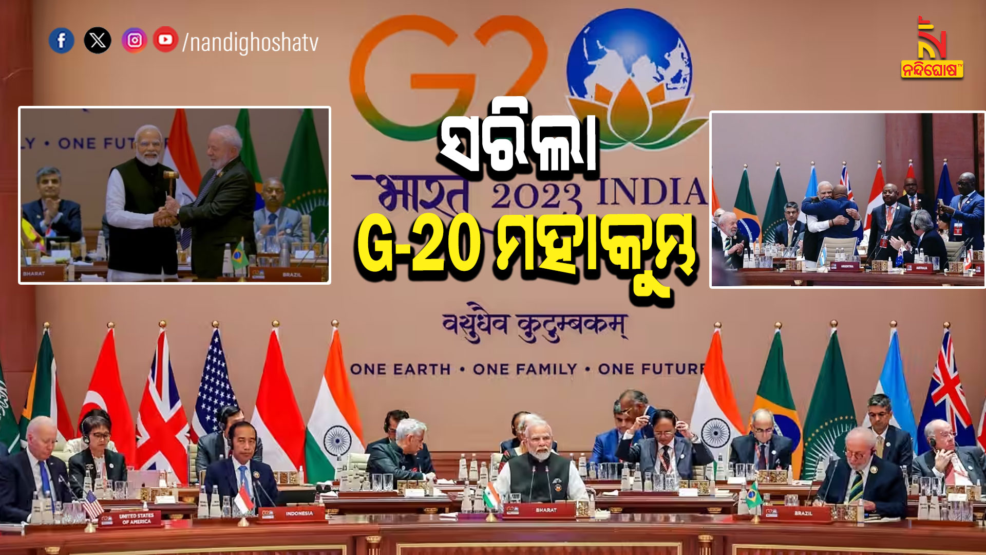 ନୂଆଦିଲ୍ଲୀ: ସରିଲା ଜି-୨୦ ମହାକୁମ୍ଭ । ବ୍ରାଜିଲ ରାଷ୍ଟ୍ରପତି ଲୁଲା ଦା ସିଲଭାଙ୍କ ହାତରେ ସଭାପତିତ୍ବ ଭାର ଅର୍ପଣ କରିଛନ୍ତି ପ୍ରଧାନମନ୍ତ୍ରୀ ନରେନ୍ଦ୍ର ମୋଦି। ଆସନ୍ତାବର୍ଷ ଜୁଲାଇରେ ବ୍ରାଜିଲର ରିଓ ଡି ଜେନେରୋରେ ହେବ ପରବର୍ତ୍ତୀ ସମ୍ମିଳନୀ । ଗୋଟିଏ ପୃଥିବୀ, ଗୋଟିଏ ପରିବାର ଗୋଟିଏ ଭବିଷ୍ୟତ ଆହ୍ବାନରେ ଅନୁଷ୍ଠିତ ସମ୍ମିଳନୀରେ ସବୁଜ ଜଳବାୟୁ ପାଣ୍ଠି ଲାଗି ବ୍ରିଟେନ ପ୍ରଧାନମନ୍ତ୍ରୀ ଋଷି ସୁନକ ୨ ବିଲିୟନ ଡଲାର ସହାୟତା ଘୋଷଣା କରିଛନ୍ତି । ଏହି ଐତିହାସିକ ସମ୍ମିଳନୀରେ ଗୃହୀତ ନୂଆଦିଲ୍ଲୀ ଘୋଷଣାନାମା ଲାଗି ଲାଗିଯାଇଥିଲା ୨୦୦ ଘଣ୍ଟା । ବସିଥିଲା ୩୦୦ରୁ ଅଧିକ ବୈଠକ । ଏହା ସହ ଆମେରିକା, ଭାରତ, ସାଉଦିଆରବ ଓ ଉପସାଗରୀୟ ରାଷ୍ଟ୍ରମଧ୍ୟରେ ଯୋଗାଯୋଗ ନେଇ ହୋଇଥିଲା ଐତିହାସିକ ବୁଝାମଣା । ସମ୍ମିଳନୀରେ ଆଫ୍ରିକାନ ୟୁନିଅନକୁ କରାଯାଇଥିଲା ନୂଆ ସଦସ୍ୟ ।