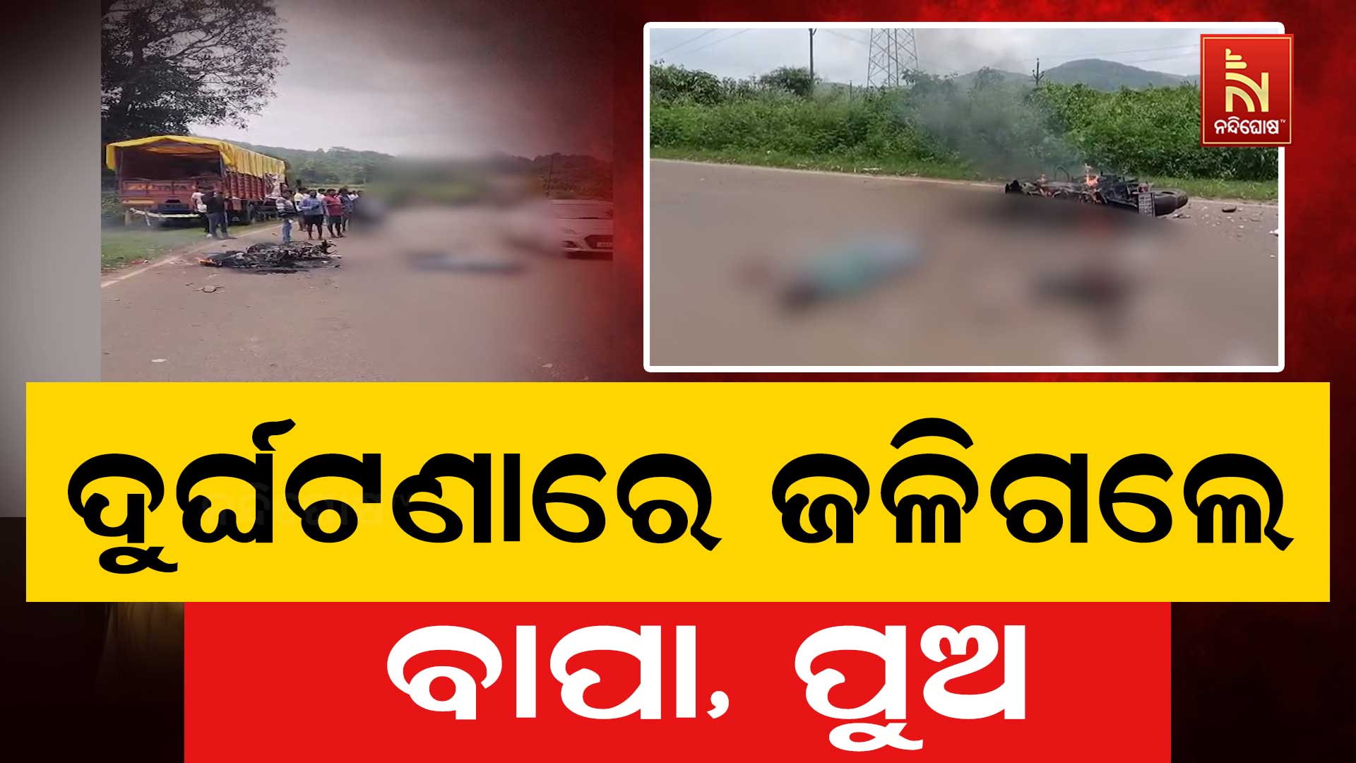 ବୋଲବମ୍ ଭକ୍ତ ଯାଉଥିବା ଟ୍ରକ ଓ ବାଇକ ମୁହାଁମୁହିଁ ଧକ୍କା। ଦୁର୍ଘଟଣାରେ ଜଳିଗଲେ ବାପା, ପୁଅ। କୋରାପୁଟ ସଦର ଥାନା ପୋଡ଼ାଗଡ ବାଳିକା ଆଶ୍ରମ ବିଦ୍ୟାଳୟ ନିକଟରେ ଅଘଟଣ। ବାଇକରେ ବାପା, ପୁଅ ଓ ଜଣେ ମହିଳା କୋରାପୁଟରୁ ପୋଡାଗଡ ଯାଉଥିବା ସମୟରେ ସେମାନଙ୍କୁ ଧକ୍କା ଦେଇଥିଲା ବୋଲବମ୍ ଭକ୍ତ ଯାଉଥିବା ଗାଡ଼ି। ଧକ୍କା ଫଳରେ ଉଭୟ ବାପା ପୁଅ ଜଳିଯାଇଥିଲେ। ତେବେ ମହିଳାଜଣକ ବର୍ତ୍ତି ଯାଇଛନ୍ତି। ଘଟଣା ସ୍ଥଳରୁ ବୋଲବମ ଗାଡ଼ି ଫେରାର ହୋଇଯାଇଛି।