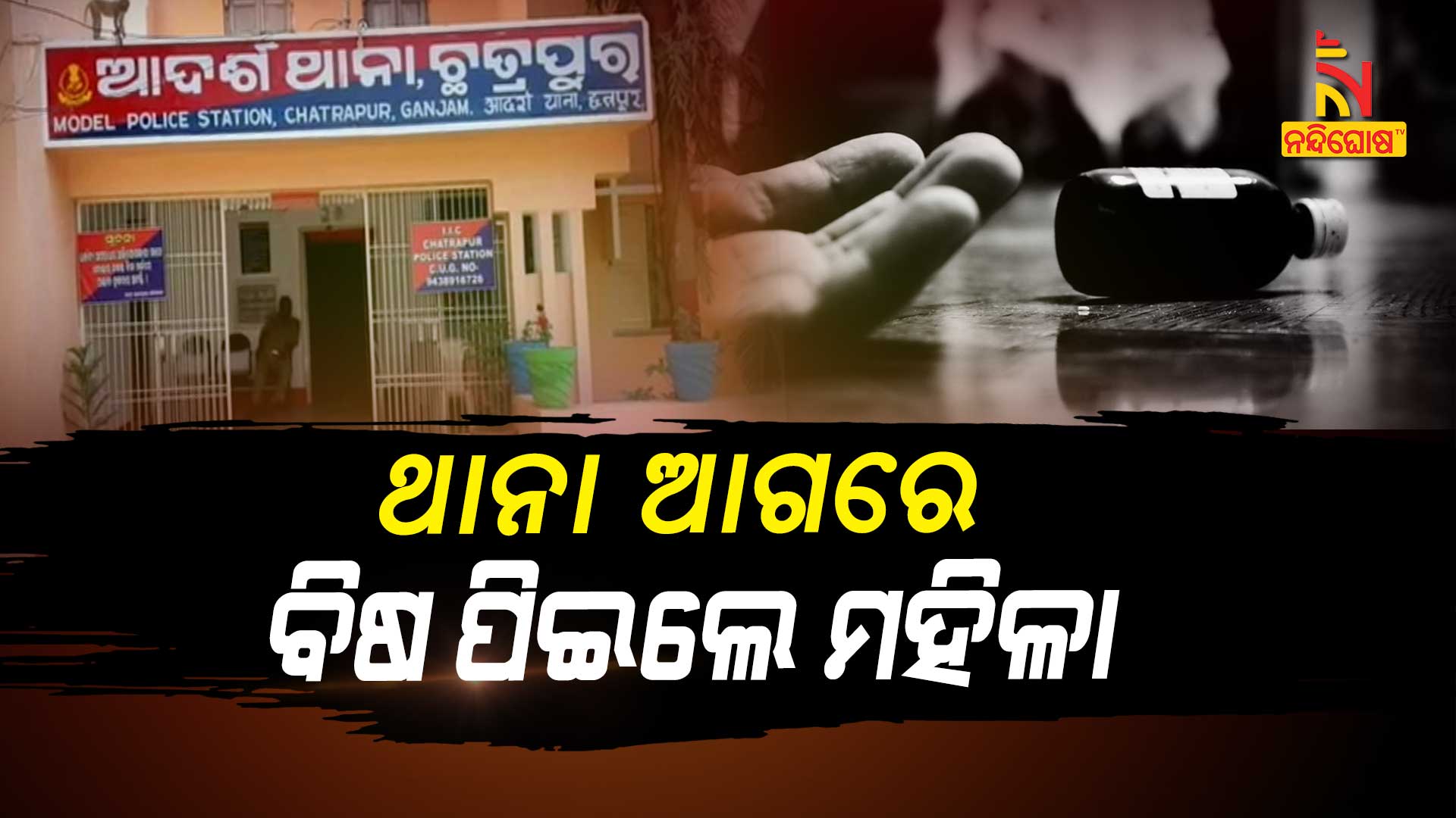 ଛତ୍ରପୁର ଥାନା ସମ୍ମୁଖରେ ଅଭାବନୀୟ ଘଟଣା, ପାରିବାରିକ କଳହକୁ ନେଇ ବିଷ ପିଇ ମହିଳାଙ୍କ ଆତ୍ମହତ୍ୟା ଉଦ୍ୟମ