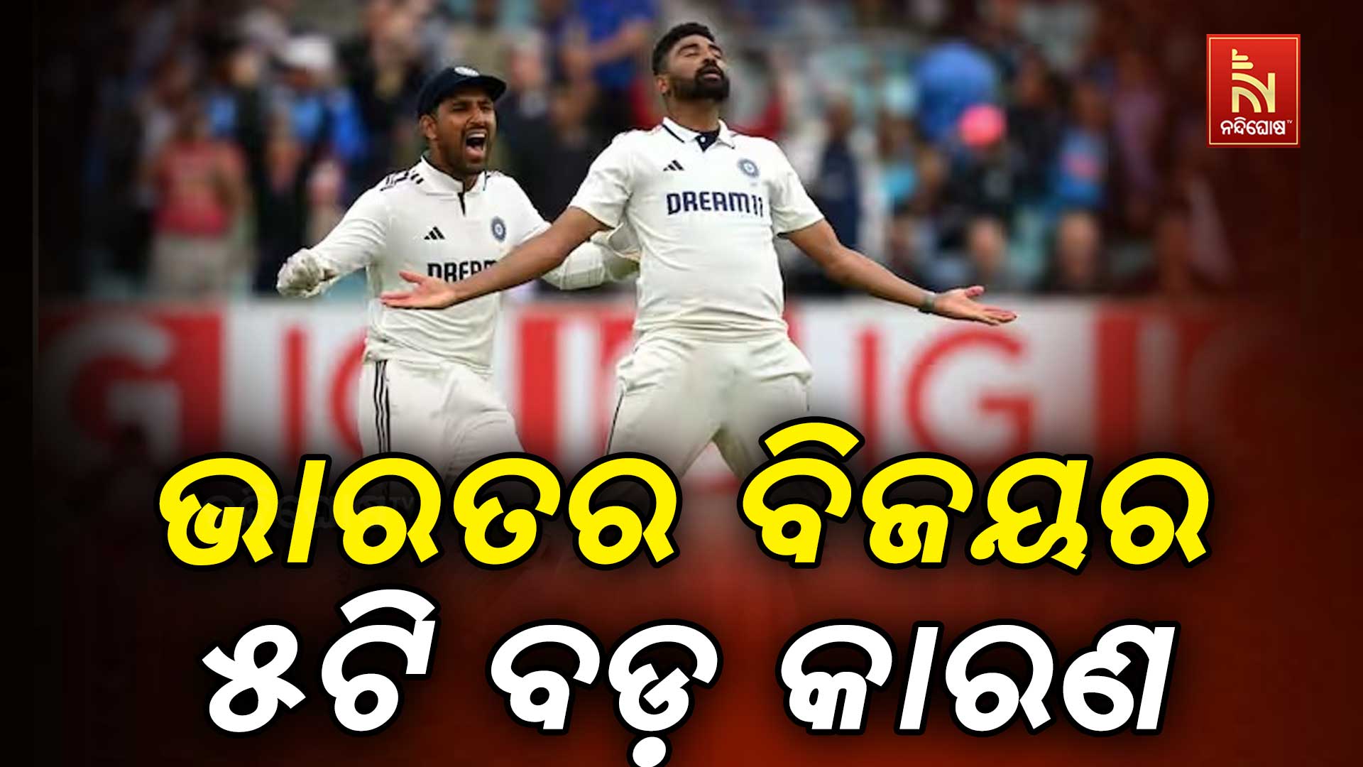 ଓଭାଲ ଟେଷ୍ଟରେ ଭାରତ ୬ ରନର ଐତିହାସିକ ବିଜୟ ହାସଲ କରିଛି । ତେବେ ଏହି ସଂଘର୍ଷପୂର୍ଣ୍ଣ ବିଜୟ ପଛରେ ୫ଟି ବଡ଼ କାରଣ ରହିଛି । ଟେଷ୍ଟ କ୍ରିକେଟ ଇତିହାସରେ ଏହା ହେଉଛି ଭାରତର ସବୁଠାରୁ କମ୍ ରନର ବିଜୟ । ଆଣ୍ଡରସନ-ତେନ୍ଦୁଲକର ଟ୍ରଫି ୨-୨ରେ ସମାପ୍ତ ହୋଇଛି । ପ୍ରଥମ ପାଳିରେ ଭାରତ ୨୨୪ ରନରେ ସୀମିତ ରହିଥିବା ବେଳେ ୬ ରନରେ ଜିତିବା ପର୍ଯ୍ୟନ୍ତ ଅନେକ କିଛି ଘଟିଯାଇଛି । ଏହି ବିଜୟ ପଛରେ କିଛି କାରଣ ରହିଛି ।