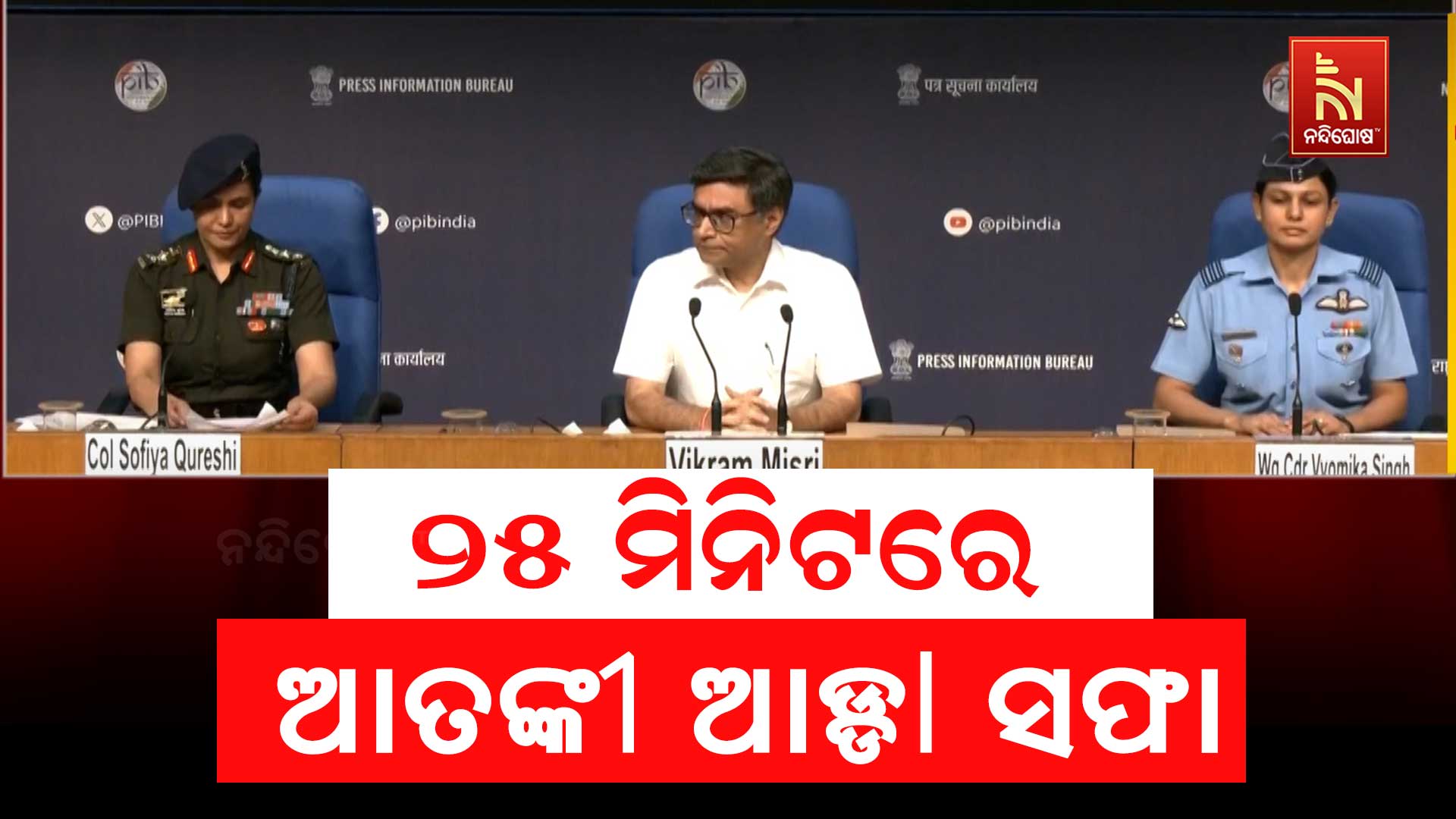 ସିନ୍ଦୂରର ଜବାବ ଦେଲା ‘ଅପରେସନ ସିନ୍ଦୂର’ । ପାକିସ୍ତାନ ଓ ପିଓକେର ୯ଆତଙ୍କବାଦୀ ଆଡ୍ଡାକୁ ଧ୍ୱଂସ କଲା ଭାରତୀୟ ସଶସ୍ତ୍ର ବାହିନୀ । ସୂଚନା ଅନୁଯାୟୀ ‘ଅପରେସନ ସିନ୍ଦୂର’ ମଙ୍ଗଳବାତ ରାତି ୧.୦୫ରେ ଆରମ୍ଭ ହୋଇ ୧.୩୦ରେ ଶେଷ ହୋଇଥିଲା । ୨୫ ମିନିଟରେ ୨୧ଟି ଟାର୍ଗେଟ ଉପରେ ଆକ୍ରମଣ କରି ଆଙ୍କବାଦୀଙ୍କ ଆଡ୍ଡାକୁ ନିପାତ କରାଯାଇଥିଲା । ଭାରତ ଏହି ଅଭିଯାନର ନାମ ଦେଇଥିଲା ‘ଅପରେସନ ସିନ୍ଦୂର’ । ସାମ୍ୱାଦିକ ସମ୍ମିଳନୀରେ ସମ୍ପୂର୍ଣ୍ଣ ସୂଚନା ଦେଇଛନ୍ତି ଭାରତୀୟ ବୈଦେଶିକ ସଚିବ ବିକ୍ରମ ମିମ୍ରି । ସେନା, ନୌସେନା ଏବଂ ବାୟୁସେନାର ମିଳିତ ଅପରେସନରେ ୩୦୦ରୁ ଅଧିକ ଆତଙ୍କବାଦୀ ନିହତ ହୋଇଥିବା ଅନୁମାନ କରାଯାଉଛି ।