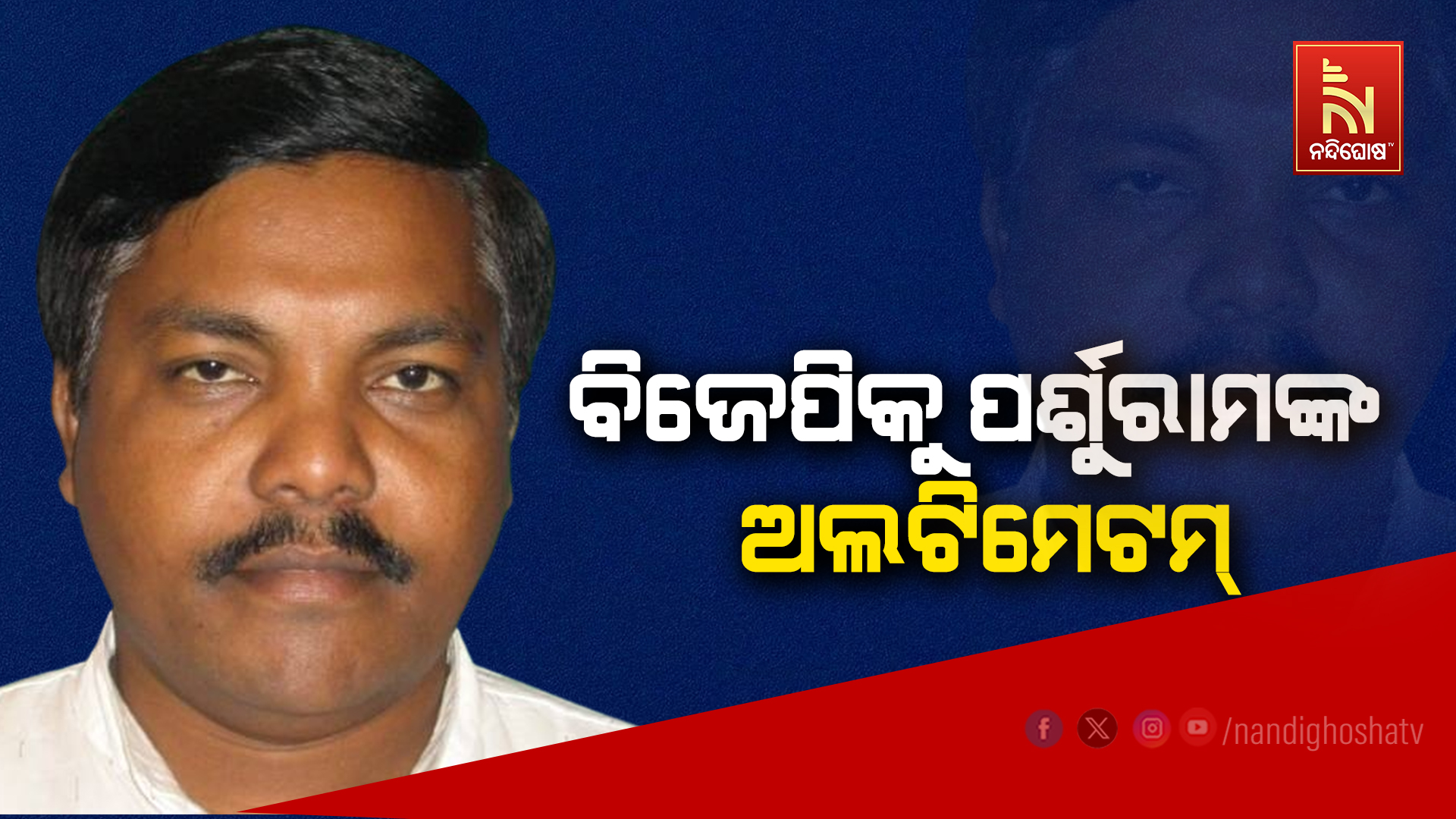 ବିଜେପି ରାଜ୍ୟ ସଭାପତି ମନମୋହନ ସାମଲଙ୍କୁ ଚିଠି ଲେଖି ପର୍ଶୁରାମ ଅଲଟିମେଟମ୍ ଦେଇଛନ୍ତି । ପ୍ରାର୍ଥୀ କରା ନଗଲେ ସେ ସମର୍ଥକଙ୍କ ସହ ଦଳୀୟ କାର୍ଯ୍ୟରୁ ବିରତ ରହିବେ ବୋଲି ଚେତାବନୀ ଦେଇଛନ୍ତି । ଏନେଇ ସମର୍ଥକଙ୍କ ସହ ସେ ଆଲୋଚନା କରିଥିବା ପର୍ଶୁରାମ କହିଛନ୍ତି ।