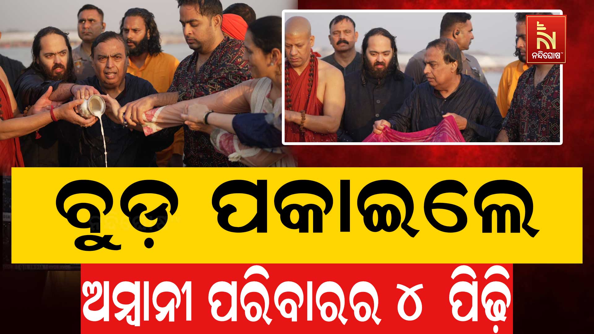 ପ୍ରୟାଗରାଜ: ୧୪୪ ବର୍ଷ ପରେ ଆସିଛି ମହାକୁମ୍ଭ । ଆଉ ଏହି ଅବସରରେ ତ୍ରିବେଣୀ ସଙ୍ଗମରେ ବୁଡ଼ ପାକାଇବାକୁ ସାରା ବିଶ୍ବରୁ ଧାଇଁ ଆସୁଛନ୍ତି ଲୋକେ । ସାଧାରଣ ଲୋକଙ୍କଠାରୁ ଆରମ୍ଭ କରି ନେତା, କଳାକାର ଓ ଶିଳ୍ପପତି ମଧ୍ୟ ବହୁ ସଂଖ୍ୟାରେ ଏଥିରେ ସାମିଲ ହୋଇ ବୁଡ଼ ପକାଉଛନ୍ତି । ଏହି କ୍ରମରେ ରିଲାଏନ୍ସ ଇଣ୍ଡଷ୍ଟ୍ରିଜର ଅଧ୍ୟକ୍ଷ ମୁକେଶ ଅମ୍ବାନୀ ନିଜ ପରିବାରର ଚାରି ପିଢିଙ୍କ ସହ ମହାକୁମ୍ଭରେ ବୁଡ଼ ପକାଇଛନ୍ତି ।