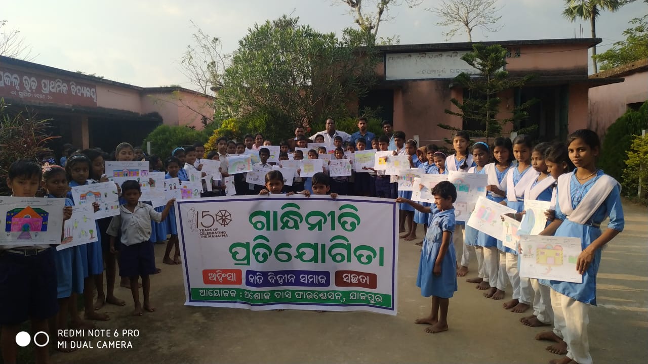 ଯାଜପୁର: ମହାତ୍ମା ଗାନ୍ଧିଙ୍କ ୧୫୦ତମ ଜୟନ୍ତୀ ଅବସରରେ ଅଶୋକ ଦାସ ଫାଉଣ୍ଡେସନ ଓ ଶିକ୍ଷା ପ୍ରଶାସନର ମିଳିତ ସହଯୋଗରେ ଆୟୋଜିତ ହୋଇଥିବା ଗାନ୍ଧିନୀତି ପ୍ରତିଯୋଗିତାର ଆଜି ୨ୟ ଦିବସ ପ୍ରତିଯୋଗିତା ଅନୁଷ୍ଠିତ ହୋଇଯାଇଛି । ଅନୁଷ୍ଠିତ ପ୍ରତିଯୋଗିତାରେ ମୋଟ ୯୫ଟି ବିଦ୍ୟାଳୟର ୨୦୧୯ ଜଣ ଛାତ୍ରଛାତ୍ରୀ ଭାଗ ନେଇଛନ୍ତି ।