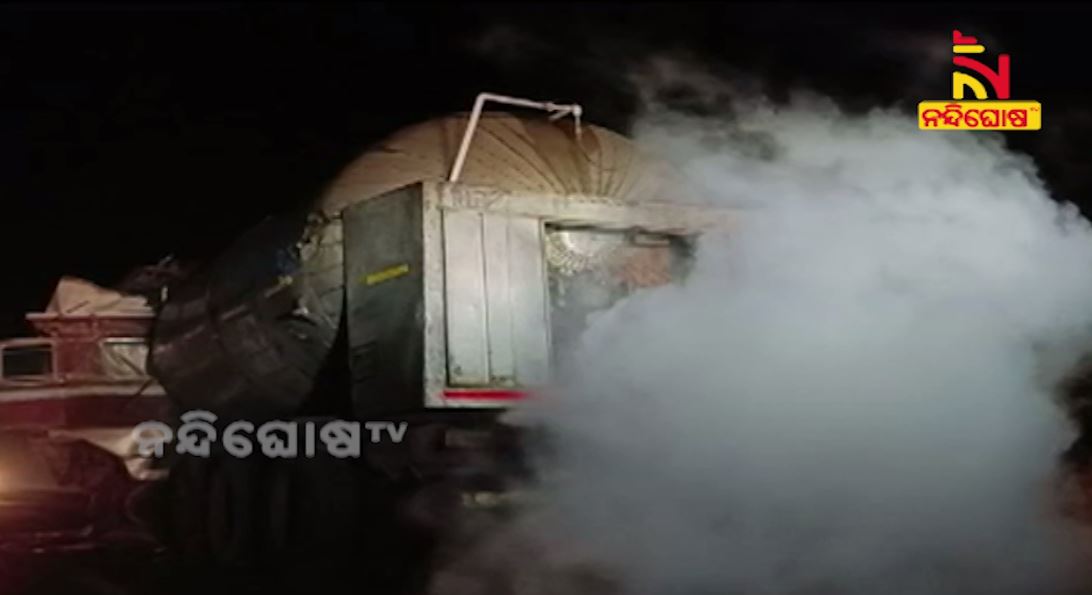ଗ୍ୟାସ ବୋଝେଇ ଟ୍ରକ ଦୁର୍ଘଟଣା ଗ୍ରସ୍ତ, ଗ୍ୟାସ ଲିକ୍ ହେବାରୁ ୟାତାୟତ ବାଧାପ୍ରାପ୍ତ