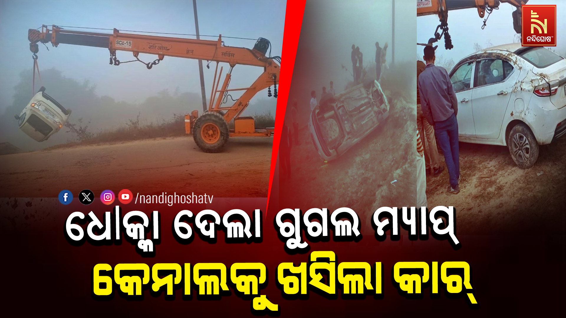 ଗୁଗଲ ମ୍ୟାପ୍ ଦେଖାଇଲା ଭୁଲ ରାସ୍ତା: କେନାଲକୁ ଖସିଲା କାର୍, ୩ ଆହତ