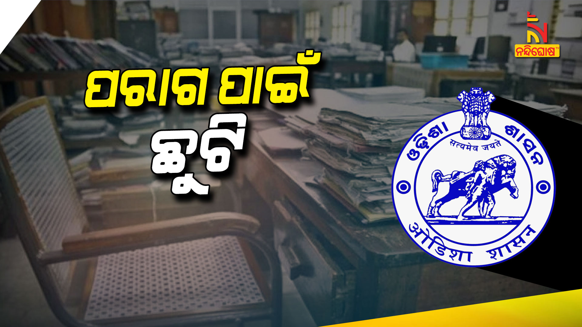 ସୂର୍ଯ୍ୟୋପରାଗ ପାଇଁ ଆଜି ଦିନକୁ ସରକାରୀ ଛୁଟି ଘୋଷଣା କରିଛନ୍ତି ରାଜ୍ୟ ସରକାର । ଏନେଇ ମୁଖ୍ୟମନ୍ତ୍ରୀଙ୍କ କାର୍ଯ୍ୟାଳୟ ପକ୍ଷରୁ ସୂଚନା ଦିଆଯାଇଛି ।
