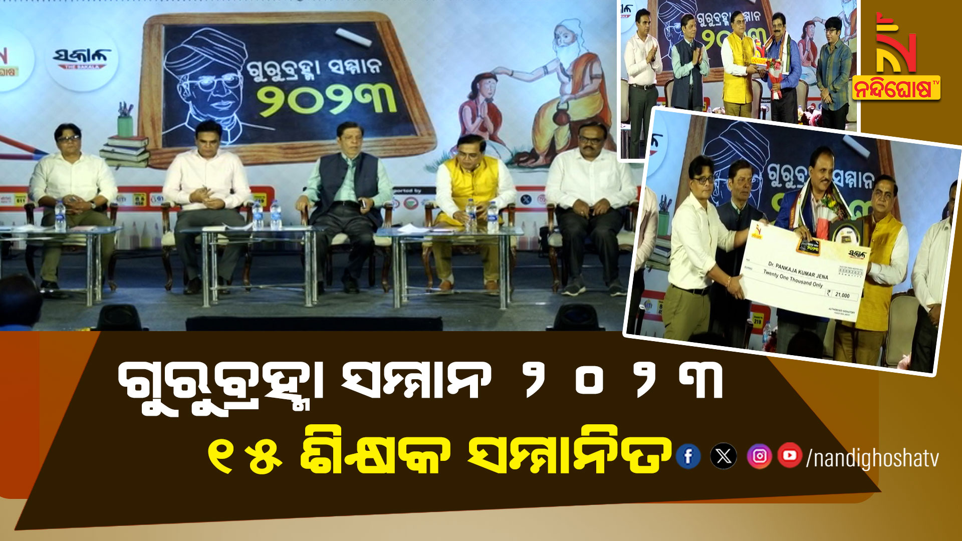 ଭୁବନେଶ୍ବର: ପବିତ୍ର ଗୁରୁ ଦିବସରେ ଗୁରୁଙ୍କୁ ସମ୍ମାନ । ନନ୍ଦିଘୋଷ ଚିଭି ଓ ଦୈନିକ ସକାଳ ପକ୍ଷରୁ ଆଜି ରାଜ୍ୟର ୧୫ ଜଣ କୃତୀ ଶିକ୍ଷକ ଏବଶିକ୍ଷୟିତ୍ରୀଙ୍କୁ ଗୁରୁବ୍ରହ୍ମା ସମ୍ମାନ ସହ ସମ୍ବର୍ଦ୍ଧନା ଓ ଆର୍ଥିକ ପୁରସ୍କାର ପ୍ରଦାନ କରାଯାଇଛି । ଭୁବନେଶ୍ବରରେ ଆୟୋଜିତ ଭବ୍ୟ କାର୍ଯ୍ୟକ୍ରମରେ ବିଶିଷ୍ଟ ବ୍ୟକ୍ତିମାନେ ଯୋଗଦେଇ ଗୁରୁମାନଙ୍କୁ ସମ୍ମାନିତ କରିଥିଲେ । ନନ୍ଦିଘୋଷ ଟିଭିର ମୁଖ୍ୟ ସମ୍ପାଦକ ଶିଶିର ଭଟ୍ଟମିଶ୍ର, ସକାଳର ସମ୍ପାଦକ ଉମାକାନ୍ତ ମିଶ୍ର, କାର୍ଯ୍ୟନିର୍ବାହୀ ସମ୍ପାଦକ ସମରେନ୍ଦୁ ଦାସ, ସି.ଭି ରମଣ ଗ୍ଲୋବାଲ ୟୁନିଭର୍ସିଟି ଅଧ୍ୟକ୍ଷ ପ୍ରଫେସର ସଞ୍ଜୀବ ରାଉତ, ନନ୍ଦିଘୋଷ ଟିଭିର ସିଇଓ ଜବର ସିଂ ପନୱର, ସକାଳର ସିଇଓ ସୁବ୍ରତ ଦାସ ପ୍ରମୁଖ ସମ୍ମାନ ପ୍ରଦାନ କରିଥିଲେ ।