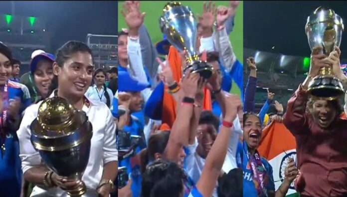 ICC ଅଧ୍ୟକ୍ଷ ଜୟ ଶାହଙ୍କଠାରୁ ଟ୍ରଫି ଗ୍ରହଣ କରିବା ପରେ, ଅଧିନାୟକ ହରମନପ୍ରୀତ କୌର ପ୍ରଥମେ ତାଙ୍କ ସାଥୀ ଖେଳାଳିଙ୍କ ସହ ଉତ୍ସବ ପାଳନ କରିଥିଲେ। ସୋସିଆଲ ମିଡିଆରେ ଏକ ଭିଡିଓ ଭାଇରାଲ ହେଉଛି । ଯେଉଁଥିରେ ଭାରତୀୟ ଅଧିନାୟକ ଏବଂ ସାଥୀ ଖେଳାଳିମାନେ ପୂର୍ବତନ ଭାରତୀୟ ଖେଳାଳି ଅଞ୍ଜୁମ ଚୋପ୍ରା, ମିତାଲି ରାଜ ଏବଂ ଝୁଲଣ ଗୋସ୍ୱାମୀଙ୍କୁ ବିଶ୍ୱକପ୍ ଟ୍ରଫି ପ୍ରଦାନ କରୁଥିବାର ଦେଖାଯାଉଛି। ଏହା ଅଭିଜ୍ଞ ଖେଳାଳିଙ୍କୁ ଭାବପ୍ରବଣ କରିଦେଇଛି।