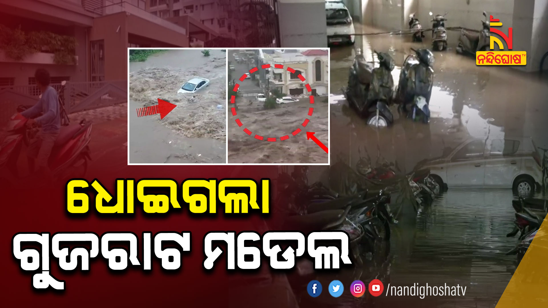 ଗାନ୍ଧୀନଗର: ପ୍ରବଳ ବର୍ଷା ପରେ ଗୁଜରାଟ ବେହାଲ । ରାଜଧାନୀ ଅହମ୍ମଦାବାଦରୁ ଜୁନାଗଡ଼ ଯାଏଁ ବିଗିଡ଼ିଛି ସ୍ଥିତି । ବନ୍ୟାପାଣିରେ ସହର ବୁଡ଼ି ରହିଥିବା ବେଳେ ଏନଡିଆରଏଫ୍ ଟିମ୍ ରେସ୍କ୍ୟୁ ଅପରେସନରେ ସାମିଲ ହୋଇଛି । ହସ୍ପିଟାଲରୁ ଏୟାରପୋର୍ଟ ସବୁଠି ଜଳପ୍ରଳୟର ଚିତ୍ର । ତଳିଆ ଅଞ୍ଚଳଗୁଡ଼ିକ ଜଳମଗ୍ନ ହୋଇଥିବା ବେଳେ ଅହମ୍ମଦାବାଦ ଏୟାରପୋର୍ଟ ପରିସର ଉବୁଟୁବୁ ହୋଇଛି । ବିମାନ ବନ୍ଦର ପରିସରରେ ବନ୍ୟାପାଣି ଯୋଗୁ ଯାତ୍ରୀମାନେ ଅସୁବିଧା ଭୋଗୁଥିବା ବେଳେ ଅନେକ ସୋସିଆଲ ମିଡିଆରେ ଭିଡିଓ ପୋଷ୍ଟ କରିଛନ୍ତି । ବିମାନ ଉଡ଼ାଣ ମଧ୍ୟ ବାଧାପ୍ରାପ୍ତ ହୋଇଛି । ଅନେକ ସହରରେ ଆପାର୍ଟମେଣ୍ଟ ବେସମେଣ୍ଟଗୁଡ଼ିକ ବନ୍ୟାପାଣିରେ ବୁଡ଼ି ରହିଛି । ଲୋକମାନେ ମୋଟର ପମ୍ପ ଯୋଗେ ବେସମେଣ୍ଟରୁ ପାଣି ବଢୁଥିବା ଦେଖାଯାଉଛି । ଆଜି ସକାଳୁ ରାଜ୍ୟର ଅଧିକାଂଶ ସ୍ଥାନରେ ବର୍ଷା ଜାରି ରହିଥିବାରୁ ଉତ୍କଟ ବନ୍ୟା ସ୍ଥିତି ଉପୁଜିଛି । ନଦୀ ଓ ଡ୍ୟାମରେ ଜଳସ୍ତର ଲଗାତାର ବୃଦ୍ଧି ଯୋଗୁ ଉପକୂଳବର୍ତ୍ତୀ ଜିଲ୍ଲାଗୁଡ଼ିକରେ ବନ୍ୟା ନେଇ ସତର୍କତା ଜାରି କରାଯାଇଛି ।