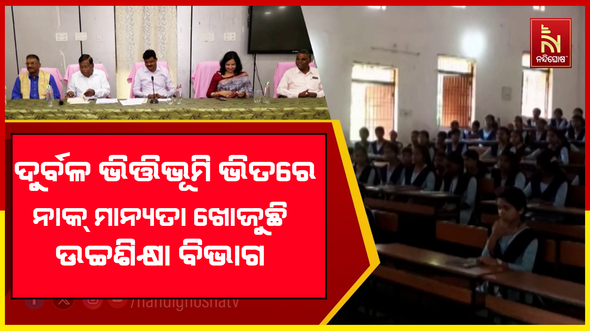 ଅସଜଡ଼ା, ଦୁର୍ବଳ ଭିତ୍ତିଭୂମି ଭିତରେ ଖୋଜୁଛନ୍ତି ନାକ ମାନ୍ୟତା । ସେପଟେ ଦୟନୀୟ ସ୍ଥିତିରେ ଗତିକରୁଛି ରାଜ୍ୟର କଲେଜ । ତାଲିମ ନୁହେଁ ନାକ ମାନ୍ୟତାରେ ଉପରକୁ ଉଠିବା ପାଇଁ ସହଯୋଗ ଲୋଡ଼ିଛନ୍ତି ସରକାରୀ କଲେଜ ଅଧ୍ୟକ୍ଷ ଅଧ୍ୟକ୍ଷା ।