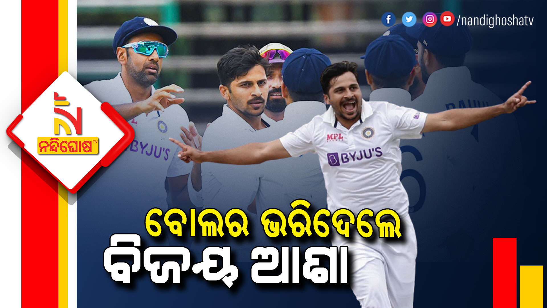 ଜୋହାନ୍ସବର୍ଗ: ବିଜୟ ଆଶା ଭରିଦେଲେ ଭାରତୀୟ ବୋଲର । ଶାର୍ଦ୍ଦୁଳ ଠାକୁରଙ୍କ ଘାତକ ବୋଲିଂ ବଳରେ ଧରାଶୟୀ ହୋଇଛି ଦକ୍ଷିଣ ଆଫ୍ରିକା ଦଳ । ଫଳରେ ଘରୋଇ ଦଳ ପ୍ରଥମ ଇନିଂସରେ ୨୨୯ ରନ୍‌ରେ ସୀମିତ ହୋଇଥିବା ବେଳେ ମାତ୍ର ୨୭ ରନ୍‌ର ଲିଡ୍ ହାସଲ କରିପାରିଥିଲା । ଏହା ପୂର୍ବରୁ ଭାରତ ୨୦୨ ରନ୍ କରି ଅଲଆଉଟ୍ ହୋଇଥିଲା। ଶାର୍ଦ୍ଦୁଲ ଏଠାରେ କ୍ୟାରିୟରର ଶ୍ରେଷ୍ଠ ବୋଲିଂ କରି ୬୧ ରନରେ ୭ ୱିକେଟ୍ ଅକ୍ତିଆର କରିଛନ୍ତି । ତେବେ ଖେଳ ଶେଷ ସୁଦ୍ଧା ୨ ହରାଇ ୮୫ ରନ୍ କରିବାରେ ସମର୍ଥ ହୋଇଛି ଭାରତ । ଫଳରେ ଦଳ ୫୮ ରନ୍‌ର ଲିଡ୍ ହାସଲ କରିପାରିଛି ।