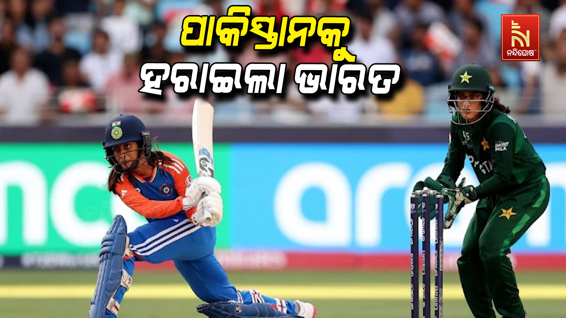 ନନ୍ଦିଘୋଷ ବ୍ୟୁରୋ: ପାକିସ୍ତାକୁ ପରାସ୍ତ କଲା ଟିମ ଇଣ୍ଡିଆ। ମହିଳା ଟି-୨୦ ବିଶ୍ଵକପରେ ପାକିସ୍ତାନକୁ ମାତ ଦେଇଛି ଭାରତ। ପାକ୍ ଟିମକୁ ୬ ୱିକେଟରେ ହରାଇଛି ଭାରତ। ପ୍ରଥମ ବ୍ଯାଟି କରି ପାକିସ୍ତାନ ଭାରତ ଆଗରେ ୧୦୬ ରନର ଟାର୍ଗେଟ ଦେଇଥିଲା। ଜବାବରେ ଭାରତ ୪ ୱିକେଟ ହରାଇ ଟାର୍ଗେଟ ହାସଲ କରି ନେଇଛି। ଭାରତ ପକ୍ଷରୁ ଶେଫାଳି ବର୍ମା ସର୍ବାଧିକ ୩୨ ରନ କରି ଟିମକୁ ବିଜୟୀ କରାଇଛନ୍ତି। ଅଧିନାୟକ ହରମନପ୍ରୀତ କୌର ଦ୍ଵିତୀୟ ସର୍ବାଧିକ ୨୯ ରନ କରିଥିବାବେଳେ ଜେମିମା ରୋଡ୍ରିଗସ ୨୩ ରନ କରିଥିଲେ। ପାକିସ୍ତାନ ବ୍ଯାଟିଂରେ ନିଦା ଦାର ସର୍ବାଧିକ ୨୮ ରନ କରିଥିଲେ। ମୁନିବା ଅଲି ଦ୍ଵିତୀୟ ସର୍ବାଧିକ ୧୭ ଏବଂ ଅଧିନାୟକ ଫାତିମା ସାନା ୧୩ ରନ କରିଥିଲେ। ଭାରତର ଅରୁନ୍ଧତୀ ରେଡ୍ଡୀଙ୍କୁ ସର୍ବାଧିକ ୪ ୱିକେଟ ମିଳିଛି। ଶ୍ରେୟଙ୍କା ପାଟିଲଙ୍କୁ ୨ଟି, ଆଶା ଶୋଭନା, ଦିପ୍ତୀ ଶର୍ମା ଏବଂ ରେଣୁକା ସିଂହଙ୍କୁ ଗୋଟିଏ ଲେଖାଏ ୱିକେଟ ମିଳିଛି।