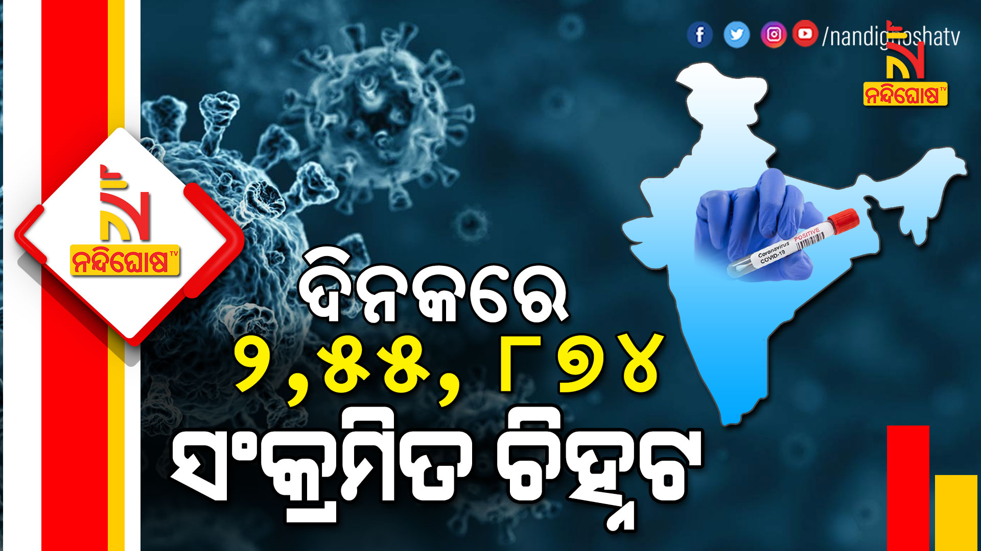 ଦେଶରେ ସୋମବାର ୩ ଲକ୍ଷରୁ ଅଧିକ କରୋନା ଆକ୍ରାନ୍ତ ଚିହ୍ନଟ ହୋଇଥିଲେ । କିନ୍ତୁ ଆଜି ଏହି ସଂଖ୍ୟାରେ ହ୍ରାସ ପାଇଛି । ଆଜି ଦେଶରେ ୨ ଲକ୍ଷ ୫୫ ହଜାର ୮୭୪ ଜଣ କରୋନା ଆକ୍ରାନ୍ତ ଚିହ୍ନଟ ହୋଇଛନ୍ତି । ଆକ୍ଟିଭ୍ କେସ୍ କଥା ଯଦି କହିବା ତାହାଲେ ବର୍ତ୍ତମାନ ଆକ୍ଟିଭ୍ କେସ୍ ସଂଖ୍ୟା ୨୨ ଲକ୍ଷ ୩୬ ହଜାର ୮୪୨ ରହିଛି । ସେହିପରି ଭାବରେ ୨୪ ଘଣ୍ଟାରେ ଦେଶରେ ୨ ଲକ୍ଷ ୬୭ ହଜାର ୭୫୩ ଜଣ ଆକ୍ରାନ୍ତ କରୋନାରୁ ସୁସ୍ଥ ହୋଇଛନ୍ତି ।