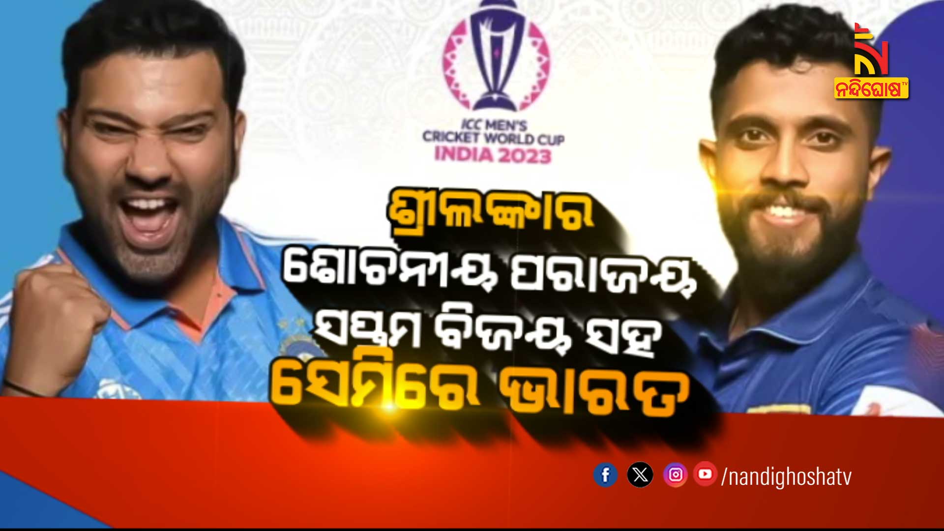 ନନ୍ଦିଘୋଷ ବ୍ୟୁରୋ : ବିଶ୍ବକପରେ ଭାରତର ବିଜୟ ଧାରା ଜାରି । ଲଗାତର ସପ୍ତମ ବିଜୟ ସହ ପ୍ରଥମ ଟିମ ଭାବେ ସେମି ଫାଇନାଲରେ ପ୍ରବେଶ କଲା ଭାରତ । ୩୦୨ ରନରେ ଶ୍ରୀଲଙ୍କାକୁ ହରାଇଲା ଟିମ ଇଣ୍ଡିଆ । ଭାରତର ୩୫୭ ରନ ଜବାବରେ ଶ୍ରୀଲଙ୍କା ୫୫ରେ ଅଲଆଉଟ୍ । ଭାରତ ପକ୍ଷରୁ ମହମ୍ମଦ ସାମ୍ମି ସର୍ବାଧିକ ୫ଟି ଓ୍ବିକେଟ ନେଇଥିବା ବେଳେ ମହମ୍ମଦ ସିରାଜ ୩ଟି, ଯଶପ୍ରୀତ ବୁମରା ଓ ଜାଡେଜା ଗୋଟିଏ ଲେଖାଏଁ ଓ୍ବିକେଟ ନେଇଛନ୍ତି । ଏହି ବିଜୟ ସହ ଭାରତ ୧୪ ପଏଣ୍ଟ ସହ ଟେବୁଲର ଶୀର୍ଷରେ ରହିଛି । ଆଜି ଓ୍ବାଙ୍ଖଡେରେ ମୁହାଁମୁହିଁ ହୋଇଥିଲେ ଭାରତ ଓ ଶ୍ରୀଲଙ୍କା । ପ୍ରଥମେ ବ୍ୟାଟିଂ କରି ଶ୍ରୀଲଙ୍କା ଆଗରେ ୩୫୮ ରନର ବିଶାଳ ବିଜୟ ଲକ୍ଷ୍ୟ ରଖିଥିଲା ଟିମ ଇଣ୍ଡିଆ । ଦଳ ପକ୍ଷରୁ ୩ ଜଣ ବ୍ୟାଟ୍ସମ୍ୟାନ ଅର୍ଦ୍ଧଶତକ ହାସଲ କରିଥିଲେ । ବିରାଟ କୋହଲି ୯୪ ବଲରେ ୮୮ ରନ କରି ଶତକରୁ ବଞ୍ଚିତ ହୋଇଥିଲେ । ଏକଦିବସୀୟ କ୍ୟାରିୟରରେ ବିରାଟ ୭୦ଟି ଅର୍ଦ୍ଧଶତକ ହାସଲ କରିଥିବାବେଳେ ଆଜି ଶତକ କରିଥିଲେ ୪୯ ତମ ଶତକ ସହ ମାଷ୍ଟରବ୍ଲାଷ୍ଟର ସଚିନ ତେନ୍ଦୁଲକରଙ୍କ ସମକ୍ଷ ହୋଇଥାନ୍ତେ । ସେହିପରି ଶୁବମନ ଗିଲ ୯୨ ବଲରେ ୯୨ ରନ୍ ଓ ଶ୍ରେୟସ ଆୟାର ମାତ୍ର ୫୬ ବଲରେ ଦ୍ରୁତ ୮୨ ରନ ହାସଲ କରିଥିଲେ । ଫଳରେ ୮ ଓ୍ବିକେଟ୍ ହରାଇ ଦଳ ୩୫୭ ରନ ସଂଗ୍ରହ କରିବାରେ ସକ୍ଷମ ହୋଇଥିଲା । ଶ୍ରୀଲଙ୍କା ପକ୍ଷରୁ ମଧୁଶଙ୍କା ସଫଳ ବୋଲିଂ କରି ୫ଟି ଓ୍ବିକେଟ ହାସଲ କରିଥିବାବେଳେ ଦୁଷ୍ମନ୍ତ ଚାମିରାଙ୍କୁ ମିଳିଛି ଗୋଟିଏ ଓ୍ବିକେଟ୍ । ୩୫୮ ରନ ବିଜୟ ଲକ୍ଷ୍ୟ ନେଇ ବ୍ୟାଟିଂ ଆରମ୍ଭ କରିଥିବା ଶ୍ରୀଲଙ୍କାକୁ ମିଳିଥିଲା ପ୍ରାରମ୍ଭିକ ଝଟକା ।