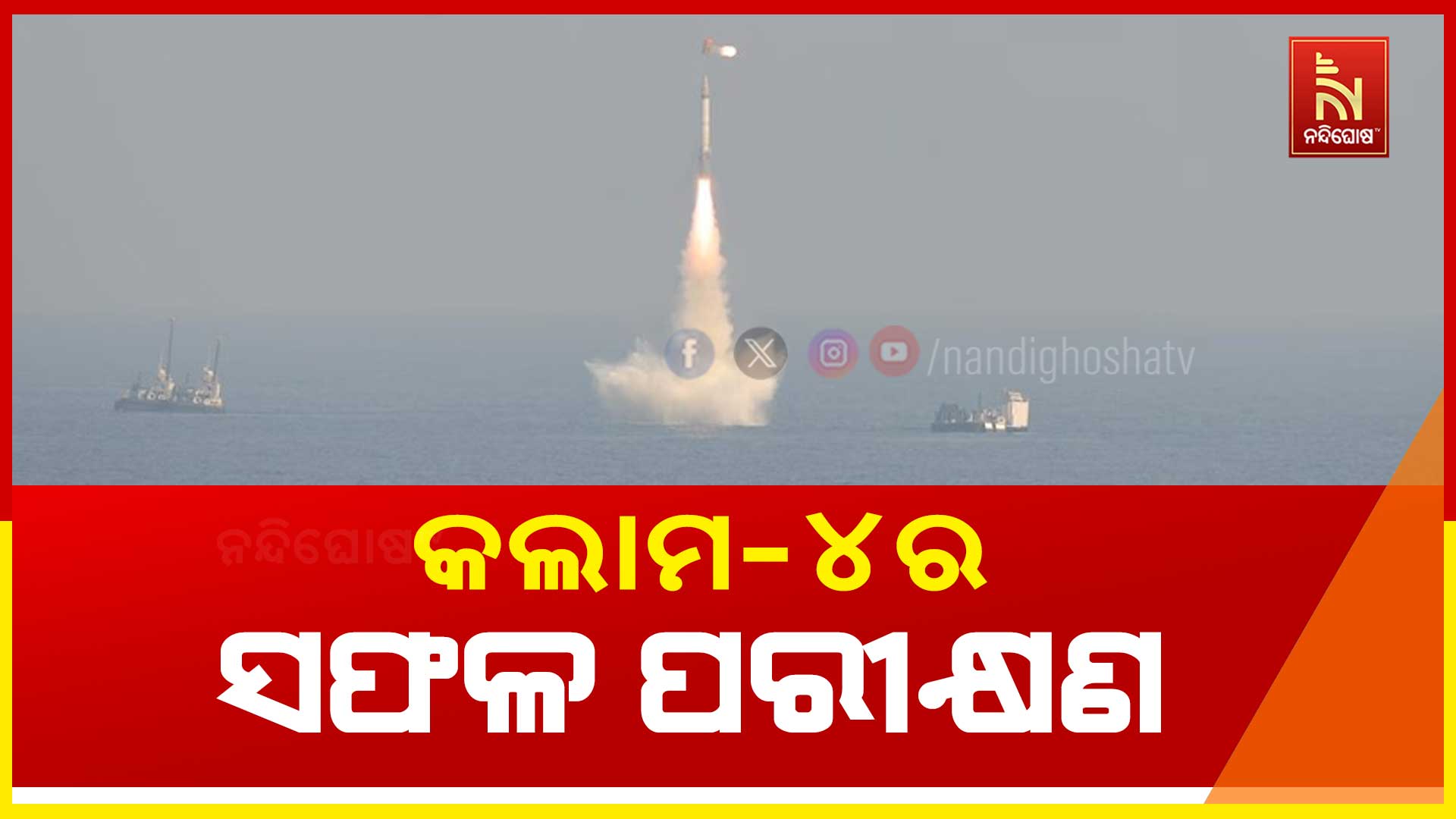 ବାଲେଶ୍ୱର : ପ୍ରତିରକ୍ଷା କ୍ଷେତ୍ରରେ ଆଉ ଏକ ମାଇଲଖୁଣ୍ଟ ପ୍ରତିଷ୍ଠା କଲା ଭାରତ । ବଙ୍ଗୋପସାଗର ବିଶାଖାପାଟଣା ନିକଟ ସମୁଦ୍ରରୁ ଅରିହନ୍ତ ବୁଡ଼ାଯାହାଜରୁ ବାଲିଷ୍ଟିକ୍ ମିସାଇଲ କେ-4କୁ ସଫଳତାର ସହିତ ପରୀକ୍ଷଣ କରାଯାଇଛି। ଏହି କ୍ଷେପଣାସ୍ତ୍ରର ଲକ୍ଷଭେଦ କ୍ଷମତା ୩ ହଜାର ୫ଶହ କିଲୋମିଟର ରହିଛି। ଇଣ୍ଟରମିଡିଏଟ ରେଂଜ ସବମରିନ ଲଞ୍ଚଡ୍ ବାଲିଷ୍ଟିକ ମିସାଇଲ ISLBM K-4ରେ ୨୫ଶହ କିଲୋଗ୍ରାମ ପର୍ଯ୍ୟନ୍ତ ଆଣବିକ ଯୁଦ୍ଧାସ୍ତ୍ର ବ୍ୟବହାର କରାଯାଇ ପାରିବ। ଯୁଦ୍ଧପୋତ ଅରିହନ୍ତରୁ ଟାର୍ଗେଟ୍କୁ୍ ସ୍ଥିରକରି କେ-4 ମିସାଇଲକୁ ଉତ୍କ୍ଷେପଣ କରାଯାଇଥିଲା।