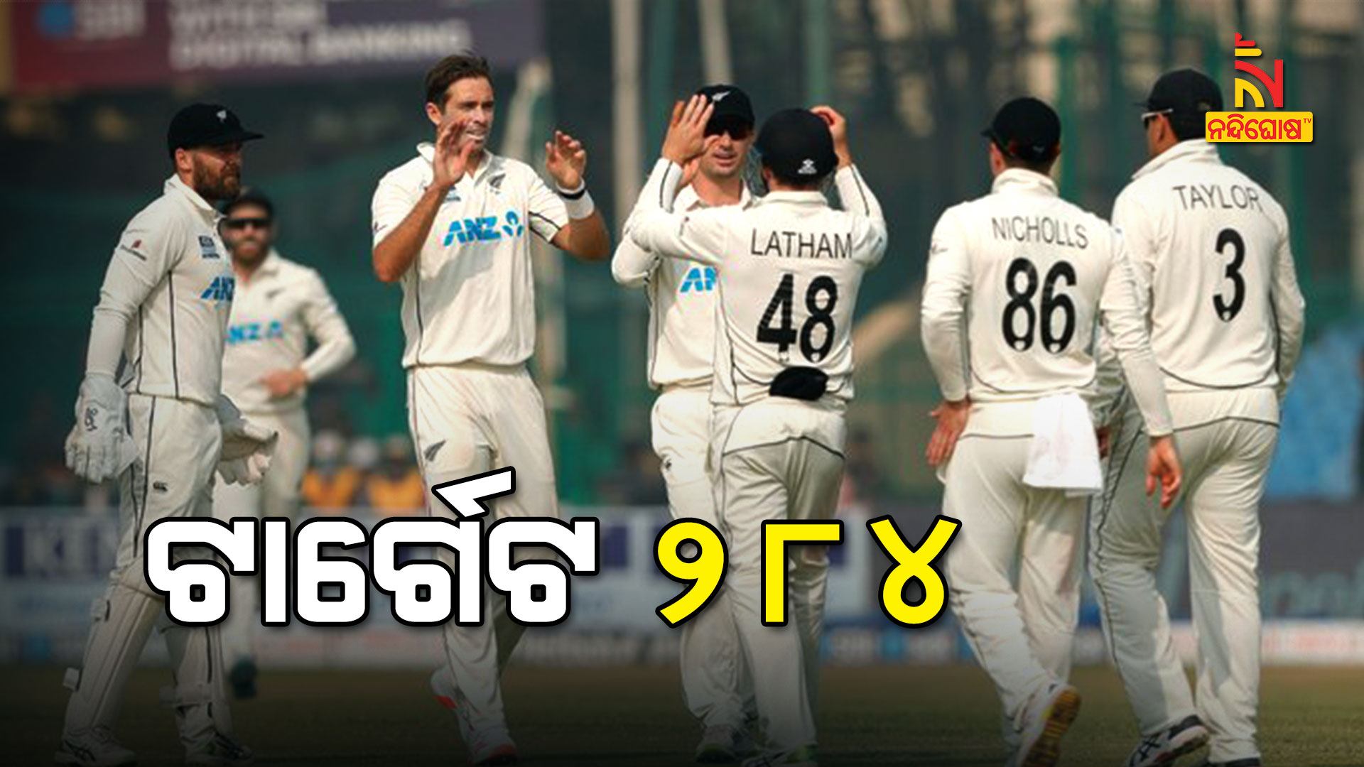 ବିଜୟ ପାଇଁ କସରତ; ଭାରତକୁ ଆବଶ୍ୟକ ୧୦ ଓ୍ବିକେଟ; ନ୍ୟୁଜିଲାଣ୍ଡ ଆଗରେ ୨୮୪ ରନ