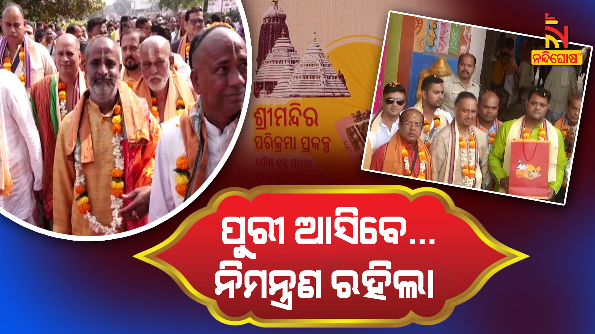 ପୁରୀରୁ ଆସିଛି ଡାକରା । ଶ୍ରୀମନ୍ଦିର ପରିକ୍ରମା ପ୍ରକଳ୍ପର ଲୋକାର୍ପଣ ଉତ୍ସବରେ ବାଲେଶ୍ବର ଜିଲ୍ଲାର ମଠ ମନ୍ଦିରକୁ ନିମନ୍ତ୍ରଣ ଦେଲେ ପୁରୀରୁ ଆସିଥିବା ଦଇତାପତି । ଏହି ଦଇତାପତି ଦଳକୁ ପ୍ରଥମେ ସିମୁଳିଆ ଠାରେ ସ୍ବାଗତ କରାଯାଇଥିବା ବେଳେ ବାଲେଶ୍ବରରେ ଲୋକପ୍ରତିନିଧି ଓ ଜିଲ୍ଲା ପ୍ରଶାସନ ତରଫରୁ ସମ୍ବର୍ଦ୍ଧିତ କରାଯାଇଥିଲା । ଦଇତାପତି ଦଳ ଶ୍ରୀମନ୍ଦିରରୁ ଆଣିଥିବା ନିମନ୍ତ୍ରଣ ପତ୍ର ସହିତ ଚତୁର୍ଦ୍ଧାମୂର୍ତ୍ତିଙ୍କ ଶ୍ରୀବସ୍ତ୍ର ପ୍ରଦାନ କରିଥିଲେ । ନୀଳଗିରି ଜଗନ୍ନାଥ ମନ୍ଦିର ଓ ବାବା ଚନ୍ଦନେଶ୍ଵର ମନ୍ଦିରର ପୂଜକମାନେ ଦଇତାପତିଙ୍କ ହାତରୁ ନିମନ୍ତ୍ରଣ ପତ୍ର ଗ୍ରହଣ କରି ସେମାନଙ୍କୁ ମନ୍ଦିର ତରଫରୁ ଉପହାର ଓ ପ୍ରସାଦ ଅର୍ପଣ କରିଥିଲେ । ସମସ୍ତ ମଠ, ମନ୍ଦିର ସହିତ ଜନସାଧାରଣ ଏହି ଭବ୍ଯ ଉତ୍ସବରେ ଯୋଗ ଦେବାକୁ ଦଇତାପତିମାନେ ନିମନ୍ତ୍ରଣ ଦେଇଛନ୍ତି । ଜାନୁଆରି 17 ତାରିଖ ଠାରୁ ସମସ୍ତ ଘର ସମ୍ମୁଖରେ ପୂର୍ଣ୍ଣକୁମ୍ଭ ପ୍ରତିଷ୍ଠା ସହିତ ଘୀଅ ଦୀପ ଜାଳି ନିରାମିଷ ଆହାର କରିବାକୁ ଦଇତାପତିମାନେ ଜନସାଧାରଣଙ୍କୁ ପରାମର୍ଶ ଦେଇଛନ୍ତି ।