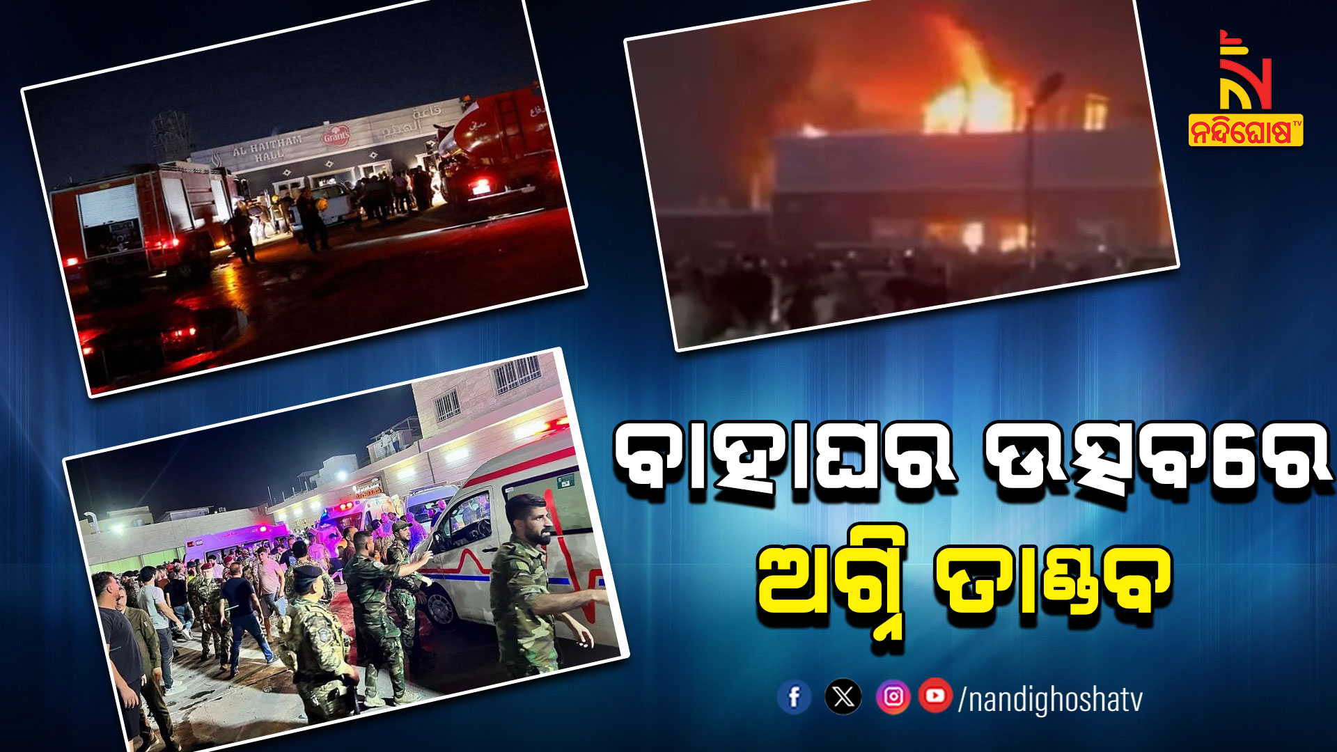 ବାଗଦାଦ: ବାହାଘର ଉତ୍ସବରେ ଅଗ୍ନି ତାଣ୍ଡବ । ୧୧୩ରୁ ଅଧିକ ଲୋକଙ୍କ ମୃତ୍ୟୁ, ୧୫୦ରୁ ଅଧିକ ଆହତ । ଇରାକ ସହରର ହାମ୍ଦାନିୟା ଘଟିଥିବା ଏହି ଭୟାନକ ଅଗ୍ନିକାଣ୍ଡ ସାରା ଦେଶରେ ଶୋକର ବାତାବରଣ ସୃଷ୍ଟି କରିଛି । ନିନେଭ ଡେପୁଟି ଗଭର୍ଣ୍ଣର ହାସନ ଅଲ ଅଲାକ କହିଛନ୍ତି- ମଙ୍ଗଳବାର ରାତି ପ୍ରାୟ ୧୦ଟା ୪୫ରେ ଏହି ଅଗ୍ନିକାଣ୍ଡ ଘଟିଥିଲା । ଏଥିରେ ୧୧୩ ଲୋକଙ୍କ ମୃତ୍ୟୁ ଘଟିଛି । ମୃତାହତଙ୍କ ସଂଖ୍ୟା ବହୁ ଅଧିକ ହେବାର ଆଶଙ୍କା ରହିଛି ।