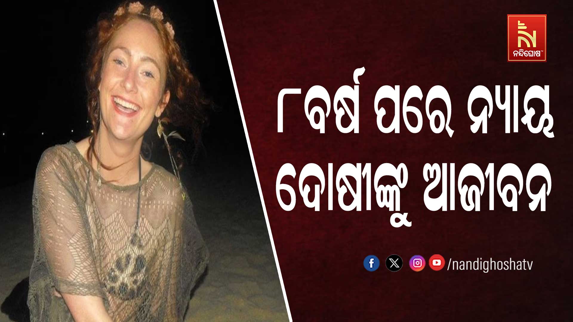 ନନ୍ଦିଘୋଷ ବ୍ୟୁରୋ: ୮ବର୍ଷର ଲଢେଇ ପରେ ବିଦେଶୀ ମହିଳାଙ୍କୁ ମିଳିଲା ନ୍ୟାୟ । ଗୋଆ ଅଦାଲତ ଆର୍ୟଲ୍ୟାଣ୍ଡ ବାସିନ୍ଦା ଡାନିଏଲ ମ୍ୟାକଲୋକ୍ଲିନଙ୍କୁ ଦୁଷ୍କର୍ମ ଏବଂ ହତ୍ୟା ମାମଲାରେ ଦୋଷୀଙ୍କୁ ଆଜୀବନ ଦଣ୍ଡାଦେଶ ଶୁଣାଇଛନ୍ତି । ଫଇସଲା ଗୋଆର ମଡଗାଓଁ ପ୍ରଧାନ ଜିଲ୍ଲା ଏବଂ ସତ୍ର ନ୍ୟାୟାଳୟ ଶୁଣାଣି କରିଛନ୍ତି । ଏହି ଘଟଣା ୨୦୧୭ର ଅଟେ । ସେହି ସମୟରେ କୈନାକୋନାରେ ଆର୍ୟଲ୍ୟାଣ୍ଡ ପର୍ଯ୍ୟଟକ ଡାନିଏଲ ମ୍ୟାକଲୋକ୍ଲିନଙ୍କୁ ହତ୍ୟା କରାଯାଇଥିଲା । ଏହି ଘଟଣାରେ ବିକେଟ ଭଗତ ନାମକ ବ୍ୟକ୍ତିଙ୍କୁ ଆଜୀବନ କାରାଦଣ୍ଡ ଘୋଷଣା କରାଯାଇଛି । ଦୋଷୀ ଜଣକ ପୀଡିତାଙ୍କୁ ଦୁଷ୍କର୍ମ ପରେ ହତ୍ୟା କରିଥିଲେ ।