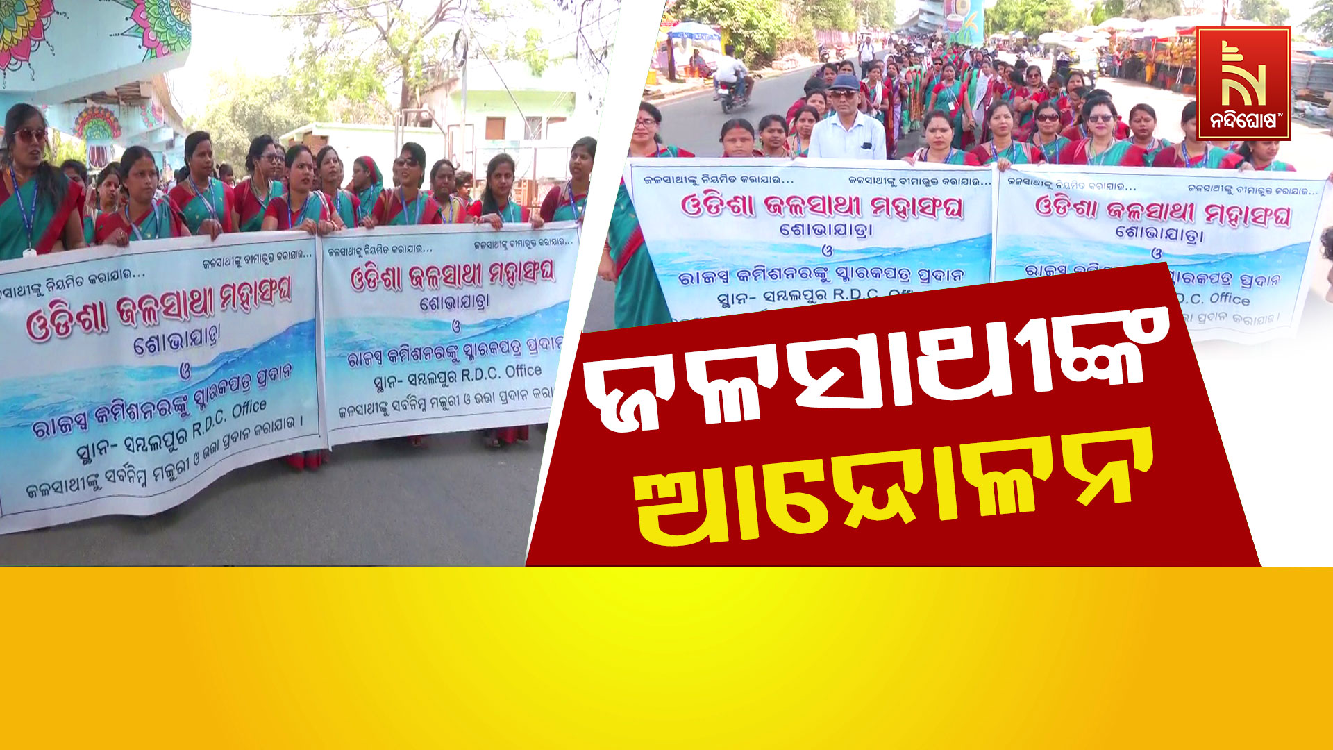 ନନ୍ଦିଘୋଷ ବ୍ୟୁରୋ: ସମ୍ବଲପୁରରେ ଜଳସାଥୀଙ୍କ ଆନ୍ଦୋଳନ । ବିଶେଷ କରି କିଭଳି ରାଜ୍ୟର ସମସ୍ତ ସହରର ସହରବାସୀ ପିଇବା ପାଣି ଟିକେ ପାଇବେ ସେଥିପାଇଁ ପୂର୍ବତନ ବିଜେଡି ସରକାର ମିଶନ ଶକ୍ତି ମାଆ ମାନଙ୍କୁ ନେଇ ଆରମ୍ଭ କରିଥିଲେ ଜଳସାଥୀ କାର୍ଯ୍ୟକ୍ରମ । କିନ୍ତୁ ବର୍ତ୍ତମାନ ସେମାନେ ଅନେକ ସମସ୍ୟାର ସମ୍ମୁଖିନ ହେଉଛନ୍ତି । ଏହାର ପ୍ରତିବାଦ କରି ଆଜି ସମ୍ବଲପୁର ସହରର ମହିଳା ଥାନା ନିକଟରୁ ଏକ ଶୋଭାଯାତ୍ରାରେ ବାହାରି ଆରଡିସି କାର୍ଯ୍ୟାଳୟ ଯାଇ ମୁଖ୍ୟମନ୍ତ୍ରୀଙ୍କ ଉଦ୍ଦେଶ୍ୟରେ ଏକ ଦାବିପତ୍ର ଦେଇଛନ୍ତି । ଜଳସାଥୀ ମହାସଂଘର ପରାମର୍ଶଦାତା ସୁଦର୍ଶନ ଛୋଟରାୟଙ୍କ ନେତୃତ୍ୱରେ ଆୟୋଜିତ ଏହି କାର୍ଯ୍ୟକ୍ରମରେ ପଶ୍ଚିମ ଓଡ଼ିଶାର ସମସ୍ତ ଜିଲ୍ଲାର ଜଳସାଥୀ ମାନେ ଯୋଗ ଦେଇଥିଲେ । ବିଶେଷ କରି ଚାକିରୀକୁ ସ୍ଥାୟୀ କରିବା ସହ କାମ କରିବା ପାଇଁ ବିଭିନ୍ନ ଭତ୍ତା ଦାବି କରିଛି ସଂଘ ।.