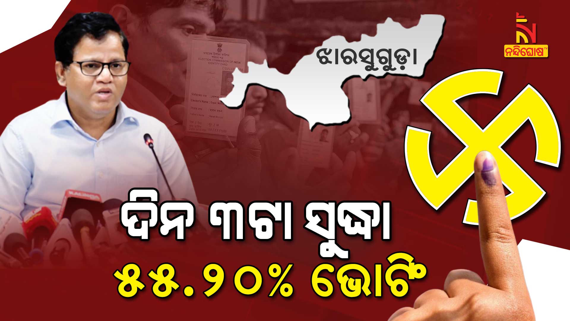 ଝାରସୁଗୁଡ଼ା ଉପନିର୍ବାଚନ ପାଇଁ ଚାଲିଛି ଭୋଟିଂ, ଦିନ ୩ଟା ସୁଦ୍ଧା ୫୫.୨୦ ପ୍ରତିଶତ ମତଦାନ