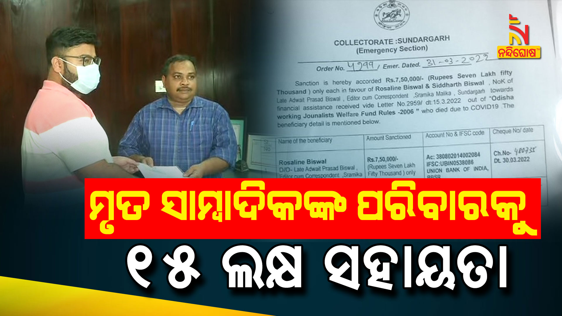ରାଉରକେଲା: କରୋନାରେ ମୃତ୍ୟୁ ହୋଇଥିବା ଶ୍ରମିକ ମାଲିକ ସାପ୍ତାହିକ ସମ୍ବାଦପତ୍ରର ଏଡିଟର ତଥା ସାମ୍ବାଦିକ ଅଦ୍ବୈତ ପ୍ରସାଦ ବିଶ୍ବାଳଙ୍କ ପରିବାରକୁ ମିଳିଲା ସହାୟତା । ରାଜ୍ୟ ସରକାରଙ୍କ ଜର୍ଣ୍ଣାଲିଷ୍ଟ ଓ୍ବେଲଫେୟାର ଫଣ୍ଡରୁ ତାଙ୍କ ପରିବାର ସଦସ୍ୟଙ୍କୁ ୧୫ ଲକ୍ଷ ଟଙ୍କା ସହାୟତା ଅର୍ଥ ପ୍ରଦାନ କରାଯାଇଛି । ରାଉରକେଲା ମହାନଗର ନିଗମ କମିଶନର ମୃତ ସାମ୍ବାଦିକଙ୍କ ପୁଅ ସିଦ୍ଧାର୍ଥ ବିଶ୍ବାଳଙ୍କୁ ସାଢେ ୭ ଲକ୍ଷ ଟଙ୍କା ଓ ଝିଅ ରୋଜାଲିନ ବିଶ୍ବାଳଙ୍କୁ ସାଢେ ୭ ଲକ୍ଷ ଟଙ୍କା ପ୍ରଦାନ କରିଛନ୍ତି ।