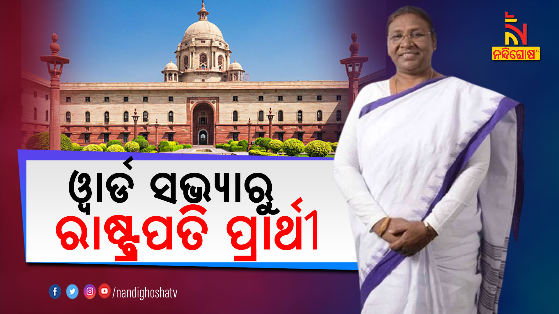 ନନ୍ଦିଘୋଷ ବ୍ୟୁରୋ: ଆଜି ବିଜେପି ରାଷ୍ଟ୍ରୀୟ ଅଧ୍ୟକ୍ଷ ଜେପି ନଡ୍ଡା ଦ୍ରୌପଦୀ ମୁର୍ମୁଙ୍କ ନାଁ ଏନଡିଏ ରାଷ୍ଟ୍ରପତି ପ୍ରାର୍ଥୀ ଭାବେ ଘୋଷଣା କରିଛନ୍ତି । ଦ୍ରୌପଦୀ ମୁର୍ମୁଙ୍କ ନାଁ ଶୁଣିବା ପରେ ସାଧାରଣ ଲୋକଙ୍କ ମନରେ ଗୋଟିଏ ଉତ୍ସାହ ସୃଷ୍ଟି ହୋଇଛି । କିଏ ଏହି ମହିଳା ଏବଂ ବିଜେପି କାହିଁକି ତାଙ୍କୁ ଯୋଗ୍ଯ ପ୍ରାର୍ଥୀ ଭାବେ ଚୟନ କଲା । ସାମାନ୍ୟ ୱାର୍ଡ ସଭ୍ୟାରୁ କେମିତି ଏକ ଚର୍ଚ୍ଚିତ ଚେହେରା ହେଲେ ଜାଣନ୍ତୁ ସମ୍ପୂର୍ଣ୍ଣ ଘଟଣା ।
