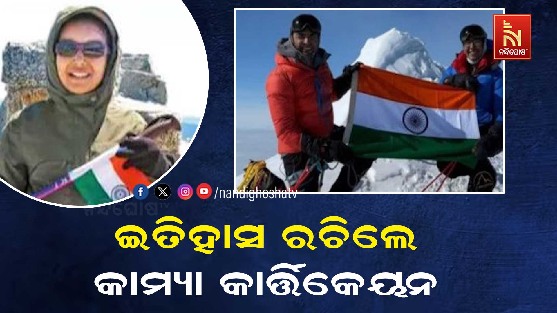 ନୂଆଦିଲ୍ଲୀ : ଇତିହାସ ରଚିଲେ କାମ୍ୟା କାର୍ତ୍ତିକେୟନ। ୧୭ ବର୍ଷୀୟ କାମ୍ୟା ଦୁନିଆର ସବୁଠାରୁ କମ ବୟସର ମହିଳା ପର୍ବତାରୋହୀ ଭାବେ ଗୌରବ ଅର୍ଜନ କରିଛନ୍ତି। ୭ ମହାଦେଶର ସର୍ବୋଚ୍ଚ ଗିରିଶୃଙ୍ଗ ଆରୋହଣ କରି ଇତିହାସ ସୃଷ୍ଟି କରିଛନ୍ତି ପର୍ବତାରୋହୀ କାମ୍ୟା କାର୍ତ୍ତିକେୟନ। ମୁମ୍ବାଇରେ ଥିବା ଭାରତୀୟ ନୌସେନା ବିଦ୍ୟାଳୟର ଦ୍ଵାଦଶ ଶ୍ରେଣୀ ଛାତ୍ରୀ ହେଉଛନ୍ତି କାମ୍ୟା କାର୍ତ୍ତିକେୟନ। ଗତ ୨୪ ତାରିଖରେ ଏହି ଐତିହାସିକ ସଫଳତା ହାସଲ କରିଛନ୍ତି କାମ୍ୟା। ଭାରତୀୟ ସମୟ ଅନୁସାରେ ଅପରାହ୍ନ ୫ଟା ୨୦ ମିନିଟ ସମୟରେ ସେ ଆଣ୍ଟାର୍କାଟିକା ମହାଦେଶର ମାଉଣ୍ଟ ୱିନସନ ଗିରିଶୃଙ୍ଗ ଆରୋହଣ କରିଥିଲେ।ଏହି ଯାତ୍ରାରେ କାମ୍ୟାଙ୍କ ସାଥିରେ ତାଙ୍କ ବାପା, ଭାରତୀୟ ନୌସେନା କମାଣ୍ଡର ମଧ୍ୟ ସାମିଲ ଥିଲେ। ଉଭୟ ଆଣ୍ଟାର୍କାଟିକାର ୧୬ ହଜାର ୫୦ ଫୁଟ ଉପରେ ଥିବା ଗିରିଶୃଙ୍ଖ ଆରୋହଣ କରିଥିଲେ। କାମ୍ୟା କାର୍ତ୍ତିକେୟନ ପର୍ବତାରୋହଣ ୧୩ ବର୍ଷ ବୟସରେ ଆରମ୍ଭ କରିଥିଲେ। ଏହି ସଫଳତା ସାହସ, ଦୃଢ ସଙ୍କଳ୍ପ ଏବଂ ଇଚ୍ଛାଶକ୍ତିର ଉଦାହରଣ ପାଲଟିଛି। କାମ୍ୟା କାର୍ତ୍ତିକେୟନ ଆଫ୍ରିକାର ମାଉଣ୍ଟ କିଲିମଞ୍ଜରୋ, ୟୁରୋପର ମାଉଣ୍ଟ ଏଲବ୍ରୁସ, ଅଷ୍ଟ୍ରେଲିଆର ମାଉଣ୍ଟ କୋସିୟଜସ୍କୋ, ଦକ୍ଷିଣ ଆମେରିକାରର ମାଉଣ୍ଟ ଅକୌକାଗୁଆ, ଉତ୍ତର ଆମେରିକାର ମାଉଣ୍ଟ ଡେନାଲି, ଏସିଆର ମାଉଣ୍ଟ ଏଭରେଷ୍ଟ ଏବଂ ଆଣ୍ଟାର୍କାଟିକାର ମାଉଣ୍ଟ ୱିନସନ ରହିଛି। କାମ୍ୟା କାର୍ତ୍ତିକେୟନଙ୍କ ଏହି ସଫଳତା ଭାରତ ଏବଂ ଭାରତୀୟ ନୌସେନା ପାଇଁ ଗର୍ବର ମୁହୂର୍ତ୍ତ। ଏହି ଅବସରରେ କାମ୍ୟା ଏବଂ ତାଙ୍କ ବାପାଙ୍କୁ ନୌସେନା ପକ୍ଷରୁ ଅଭିନନ୍ଦନ ପ୍ରଦାନ କରାଯାଇଛି। ସଫଳତାକୁ ଐତିହାସିକ ଉପଲବ୍ଧୀ ଦର୍ଶାଇବା ସହ ଯୁବବର୍ଗଙ୍କ ଏହା ଅସୀମ ସାହସ ଏବଂ କ୍ଷମତାକୁ ଦର୍ଶାଉଅଛି।