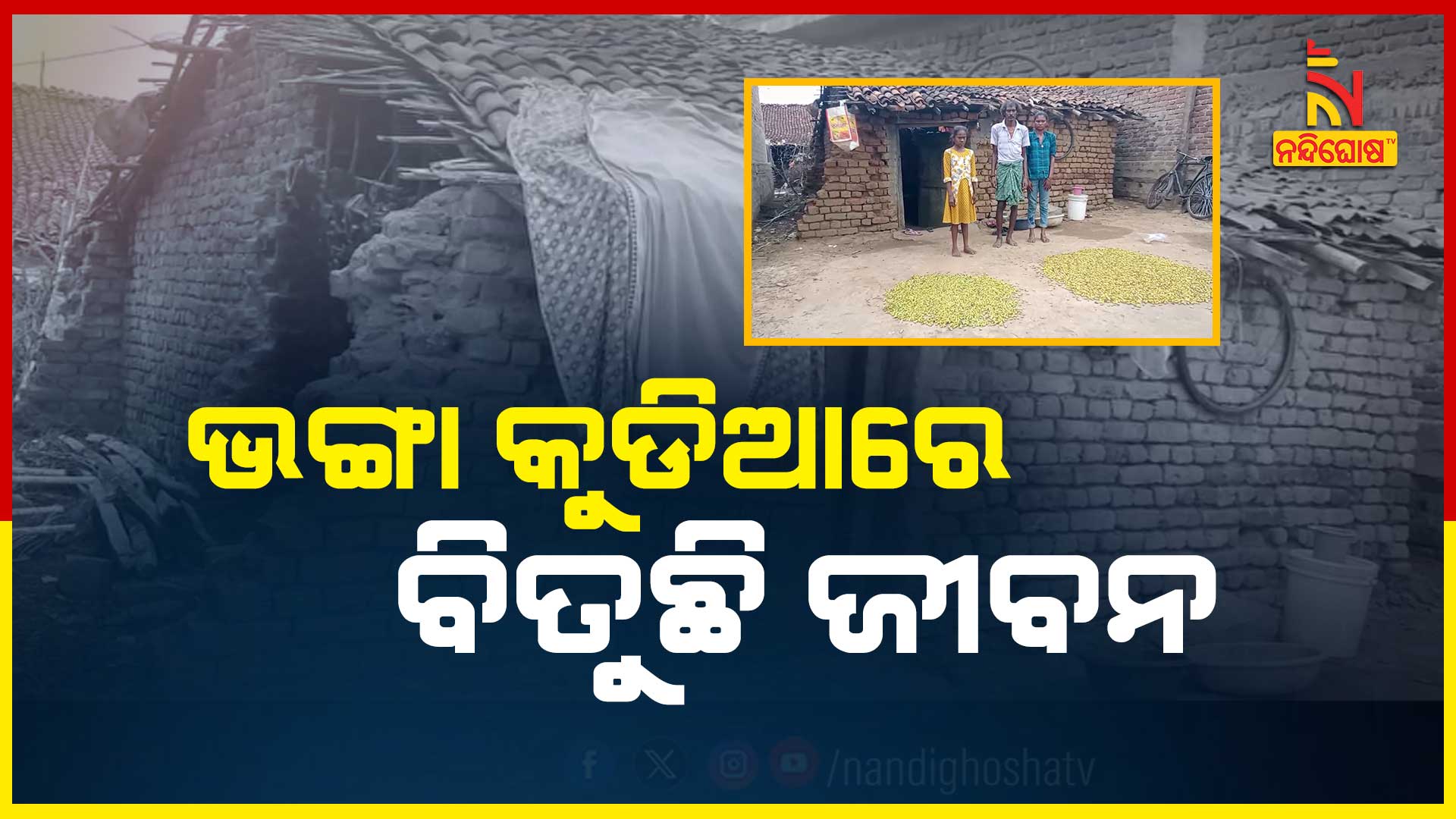 ନନ୍ଦିଘୋଷ ବ୍ୟୁରୋ: ପାଠ ପଢ଼ା ବୟସରେ ପରିବାର ବୋଝ । ଭଙ୍ଗା କୁଡିଆରେ ଚଳୁଛନ୍ତି ୫ ପ୍ରାଣୀ କୁଟୁମ୍ବ। କଳାହାଣ୍ଡି ଗୋଲାମୁଣ୍ଡା ବ୍ଲକ ଗଣ୍ଡା ମେର ପଞ୍ଚାୟତର ବାହାଦୁର ପଡା ଗାଁ l ଗାଁର ଇଶ୍ୱର ବନ୍ଦିଛୋଡ ଜଣେ ମାନସିକ ବିକୃତ ରୋଗୀ। ବାପା ଅସୁସ୍ଥ ହେବା ପରେ ପରିବାର ପ୍ରତିପୋଷଣ ପାଇଁ ଅଣ୍ଡା ଭିଡିଛନ୍ତି ବଡ ଝିଅ ।