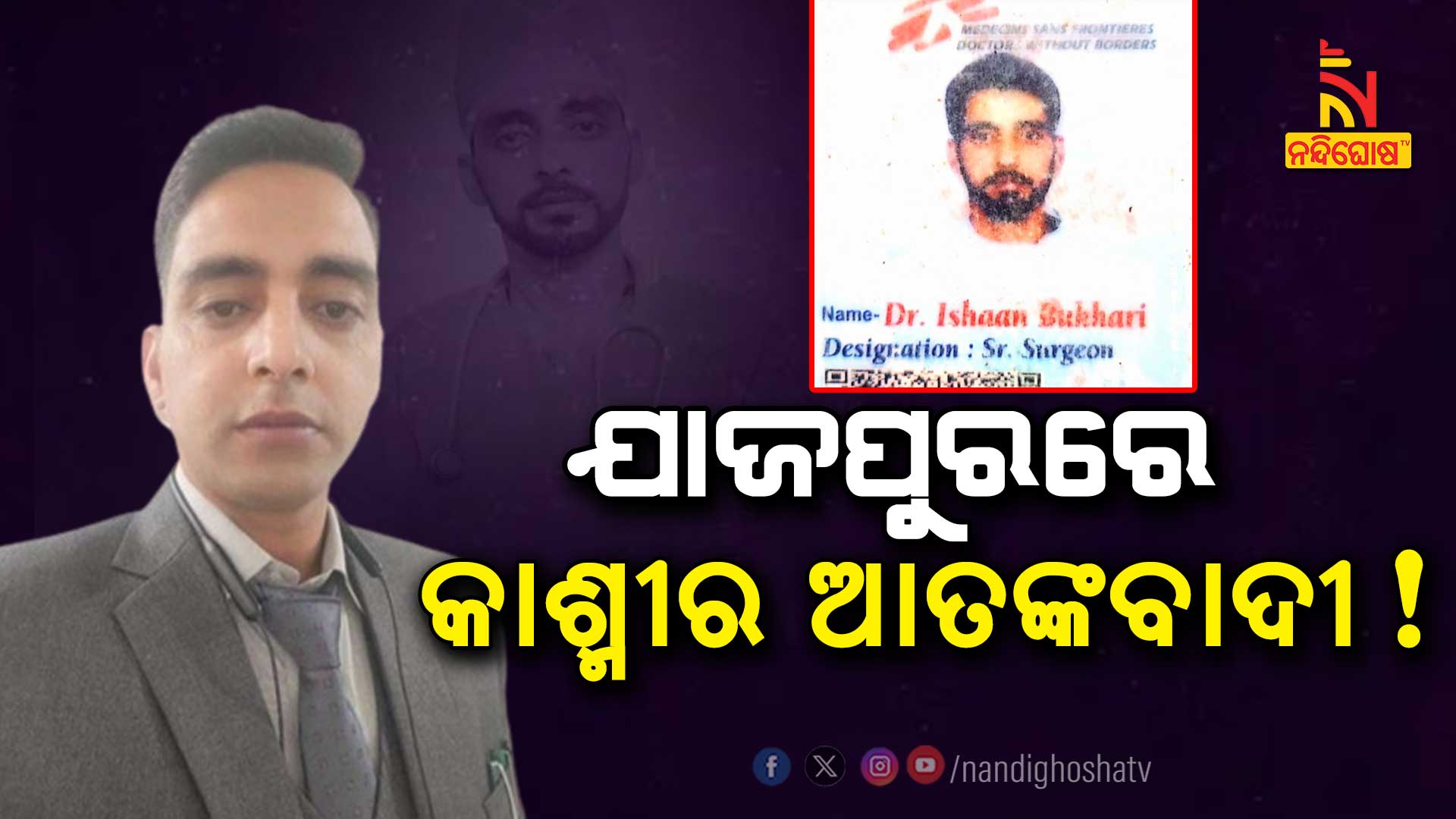 ଯାଜପୁର: ଯାଜପୁରରୁ ଧରାପଡ଼ିଲା କାଶ୍ମୀର ଆତଙ୍କବାଦୀ । କାଶ୍ମୀର ଆତଙ୍କବାଦୀ ସୟଦ ଇଶାନ ବୁଖାରୀକୁ ଗିରଫ କଲା ଏସଟିଏଫ୍ । ସ୍ଥାନୀୟ ପୋଲିସ ସହାୟତାରେ ଯାଜପୁର ଧର୍ମଶାଳା ଅଞ୍ଚଳର ନେଉଳପୁରରେ ଚଢ଼ାଉ କରିଥିଲା ଏସଟିଏଫ୍ । ଶୁକ୍ରବାର ନେଉଳପୁରରୁ ଇଶାନ ବୁଖାରୀକୁ ଗିରଫ କରିଛି ଏସଟିଏଫ୍ । ନିଜକୁ ବିଭିନ୍ନ ନାଁରେ ପରିଚୟ ଦେଇ ବୁଲୁଥିଲା ସୟଦ ବୁଖାରୀ । ନିଜକୁ ସେନାର ଜଣେ ଡାକ୍ତର ଓ ପିଏମଓ ଅଧିକାରୀର ପରିଚୟ ଦେଉଥିଲା । ତେବେ ସ୍ଥାନୀୟ ଲୋକଙ୍କ ସନ୍ଦେହ ହେବା ପରେ ପୋଲିସକୁ ସୂଚନା ଦେଇଥିଲେ । STF ତାକୁ ଗିରଫ କରିଥିବାବେଳେ ଅଭିଯୁକ୍ତ ସମ୍ପର୍କରେ ଅନେକ ଗୁରୁତ୍ବପୂର୍ଣ୍ଣ ସୂଚନା ଦେଇଛନ୍ତି । ଧରା ହୋଇଥିବା ଆତଙ୍କବାଦୀ ଇଶାବ ୬ରୁ ୭ ଜଣଙ୍କୁ ବିବାହ କରିଛି । ୟୁପି, ମହାରାଷ୍ଟ୍ର ଓ କାଶ୍ମୀରରେ ସେ ବିବାହ କରିଛି । କେରଳ ଓ ପାକିସ୍ତାନର ଅନେକ ସନ୍ଦିଗ୍ଧ ସଂଗଠନ ସହ ଯୋଗାଯୋଗରେ ଥିଲା । ତା ପାଖରୁ ଅନେକ ଆଇ-କାର୍ଡ, ଏଟିଏମ କାର୍ଡ, ଚେକ୍, ଆଧାର କାର୍ଡ ଏବଂ ଭିଜିଟିଙ୍ଗ କାର୍ଡ ଜବତ । NIA ଅଧିକାରୀଙ୍କ ସହ ଯୋଗାଯୋଗ କରାଯାଇଛି, ତଦନ୍ତ ପରେ ସବୁ ସ୍ପଷ୍ଠ ହେବ । କାଶ୍ମୀରରେ ଠକେଇ ମାମଲାରେ ଅଭିଯୁକ୍ତ ବିରୋଧରେ NBW ଜାରି ହୋଇଛି । ଦଫା ୪୧୯, ୪୨୦, ୪୬୫, ୪୬୭, ୪୬୮, ୪୭୧, ୧୨୦(ଖ)ରେ ମାମଲା ରୁଜୁ । ଅଭିଯୁକ୍ତ ନିକଟରୁ ୪ଟି ମୋବାଇଲ ଜବତ ହୋଇଛି । ISI ସହ ଯୋଗାଯୋଗରେ ଥିଲା, ଟେରର ଲିଙ୍କ୍ ନେଇ ତଦନ୍ତ ଚାଲିଛି ।