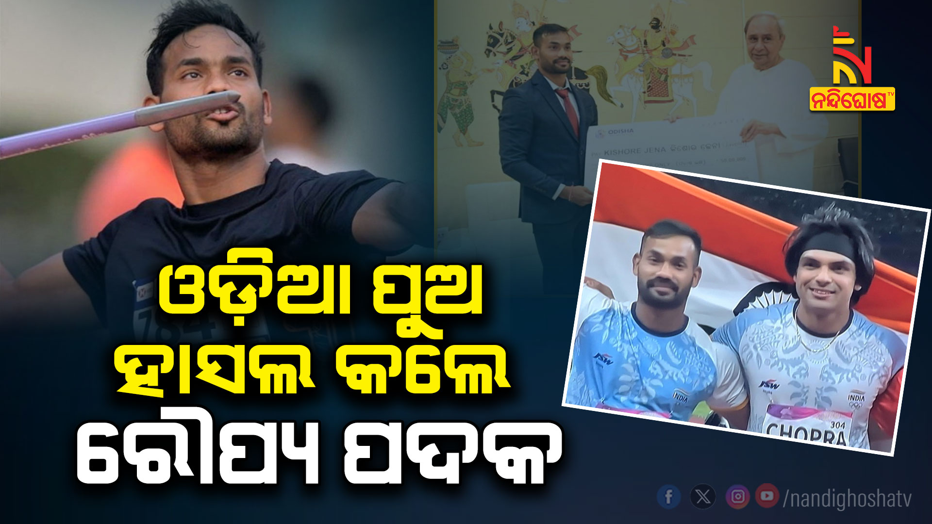 ନନ୍ଦିଘୋଷ ବ୍ୟୁରୋ : ଏସିଆନ ଗେମ୍ସରେ ଚମକିଲେ ଓଡ଼ିଆ ପୁଅ । ଜାଭେଲିନରେ କିଶୋର ଜେନାଙ୍କୁ ମେଡାଲ । ଜାଭେଲିନ୍ ଥ୍ରୋରେ ରୌପ୍ୟ ପଦକ ହାସଲ କଲେ କିଶୋର । ୮୭.୫୪ ମିଟର ଥ୍ରୋ କଲେ କିଶୋର ଜେନା । ବିଶ୍ବ ଚାମ୍ପିଆନସିପ୍ରେ ୫ ନମ୍ବର ସ୍ଥାନରେ ଥିଲେ କିଶୋର । ୫୦ ଲକ୍ଷ ଟଙ୍କା ସହ ସମ୍ମାନିତ କରିଥିଲେ ମୁଖ୍ୟମନ୍ତ୍ରୀ । ଏସିଆନ ଗେମ୍ସ ପାଇଁ କହିଥିଲେ ‘ଅଲ ଦ ବେଷ୍ଟ’ । ପ୍ୟାରିସ ଅଲିମ୍ପିକ୍ସ ପାଇଁ କିଶୋରଙ୍କ ଯୋଗ୍ୟତା ଅର୍ଜନ। କିଶୋରଙ୍କ ନୂଆ ପର୍ସନାଲ ବେଷ୍ଟ ସ୍କୋର ୮୭.୫୪ ମିଟର । ଜାଭଲିନ୍ ଥ୍ରୋରେ ସ୍ୱର୍ଣ୍ଣପଦକ ଜିତିଲେ ସୁନା ପୁଅ ନୀରଜ ଚୋପ୍ରା । ସେପଟେ ନୀରଜ ଚୋପ୍ରା ୮୮.୮୮ ମିଟର ଜାଭଲିନ୍ ଥ୍ରୋ କରିଥିଲେ । ସେହିପରି କିଶୋର ଜେନା ୮୭.୫୪ ମିଟର ଜାଭଲିନ୍ ଥ୍ରୋ କରିଥିଲେ । ପୂରା ପ୍ରତିଯୋଗିତାରେ ଦୁଇ ଭାରତୀୟ ଖେଳାଳିଙ୍କ ଭିତରେ ଟକ୍କର ଦେଖିବାକୁ ମିଳିଥିଲା । ଏମିତି କି ଗୋଟିଏ ରାଉଣ୍ଡରେ ନୀରଜ ଚୋପ୍ରାଙ୍କୁ ପଛରେ ପକାଇ ଦେଇଥିଲେ କିଶୋର ଜେନା ।
