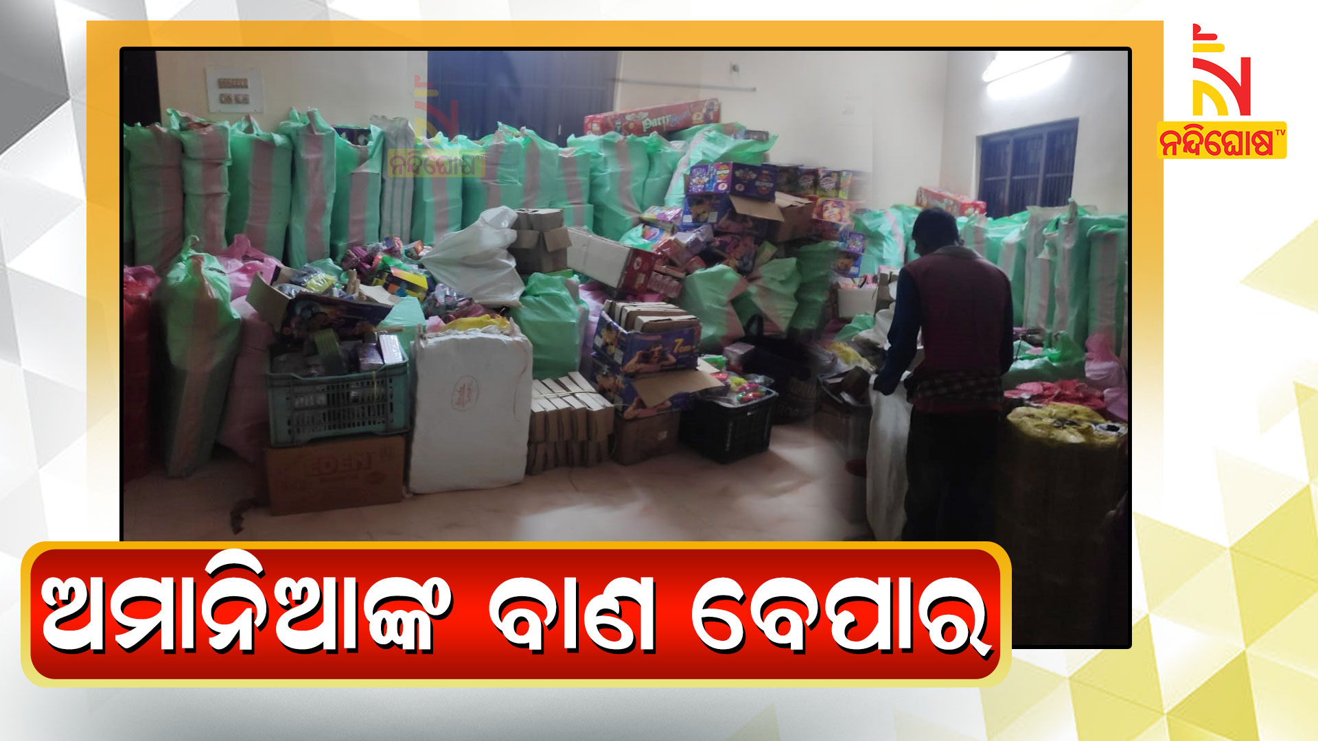 ଗଞ୍ଜାମ ଜିଲ୍ଲାରେ ମଧ୍ୟ ପାଟପୁର ଥାନା ଡେଙ୍ଗାଉସ୍ତାରେ ଥିବା ବେଆଇନ ବାଣ ଦୋକାନ ଗୋଦାମରେ ଚଢ଼ାଉ । ବିଳମ୍ବିତ ରାତିରେ ବାଣ ଦୋକାନରେ ଚଢ଼ାଉ କରି ବିପୁଳ ପରିମାଣ ର ବାଣ ଜବତ କରିବା ସହ ଜଣଙ୍କୁ ଗିରଫ କରିଛି ପାଟପୁର ପୋଲିସ ।