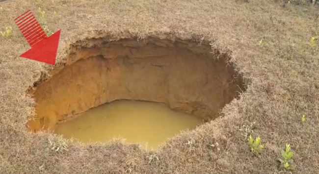 ସନ୍ଧ୍ୟା ସମୟରେ ହାଣ୍ଡିଧୂଆ ଅଞ୍ଚଳର କିଛି ଲୋକ ଶୌଚ ହେବାକୁ ଯାଇଥିବା ବେଳେ ହଠାତ ଏକ ଶବ୍ଦ ହୋଇଥିଲା । ଶବ୍ଦ ଶୁଣି ସେମାନେ ଗ୍ରାମର ଅନ୍ୟ ଲୋକଙ୍କୁ ଜଣାଇଥିଲେ । ଶବ୍ଦ ହୋଇଥିବା ସ୍ଥାନକୁ ଯାଇ ଦେଖିବା ବେଳକୁ ଜମିରେ ୧୦ ଫୁଟ ଓସାରର ଏକ ବିରାଟକାୟ ଗର୍ତ୍ତ ସୃଷ୍ଟି ହୋଇଛି । ଯାହାକୁ ନେଇ ଅଞ୍ଚଳରେ ଭୟର ବାତାବରଣ ଖେଳିଯାଇଛି ।