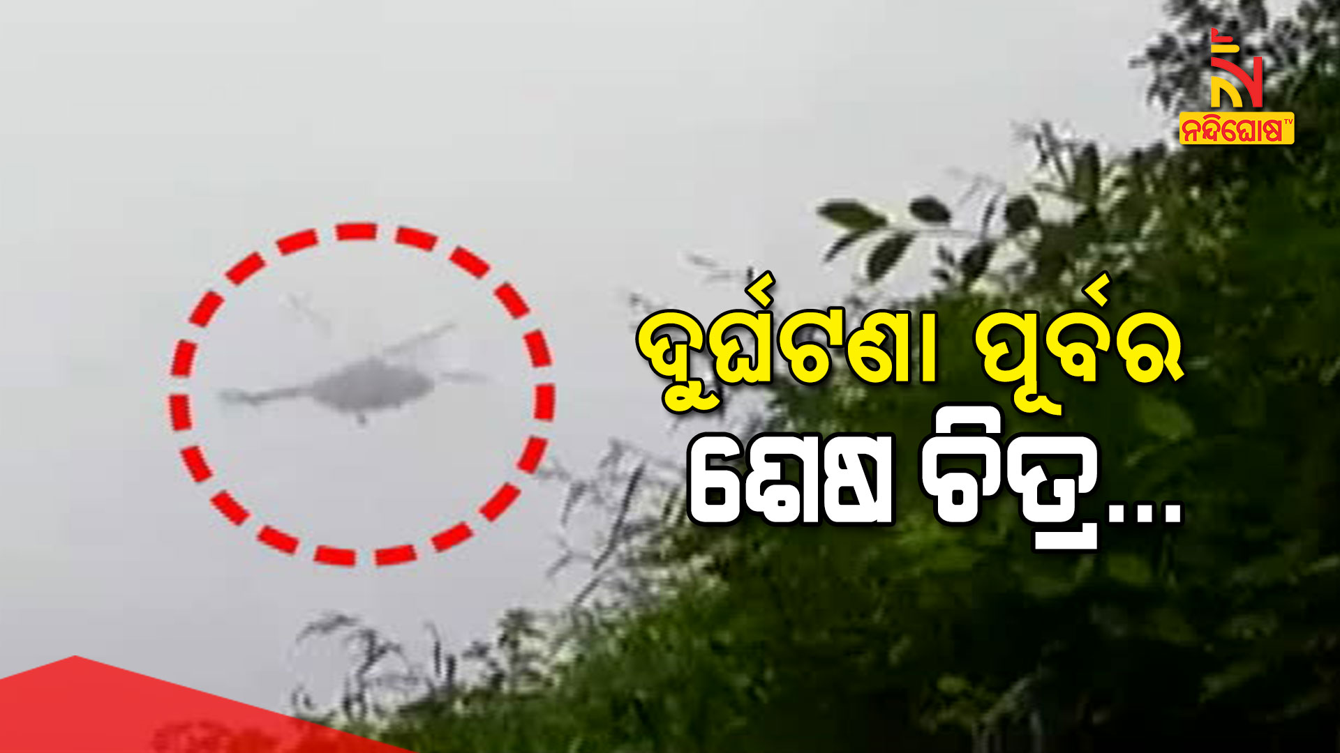 ନୂଆଦିଲ୍ଲୀ: ସିଡିଏସ୍ ଜେନେରାଲ୍ ବିପିନ ରାୱତଙ୍କ ହେଲିକପ୍ଟର ଦୁର୍ଘଟଣାର ଆଉ ଏକ ନୂଆ ଭିଡିଓ ସାମ୍ନାକୁ ଆସିଛି।ନୀଳଗିରି ଜଙ୍ଗଲରେ ଜଣେ ପର୍ଯ୍ୟଟକଙ୍କ ମୋବାଇଲରେ କଏଦ ହୋଇଛି ଦୁର୍ଘଟଣା ପୂର୍ବର ଲୋମହର୍ଷଣକାରୀ ମୁହୂର୍ତ୍ତ। ଚପରଟି କୁହୁଡି ବଳୟରେ ଖୁବ୍ ତଳେ ଉଡୁଥିବା ନେଇ ଉକ୍ତ ଭିଡ଼ିଓରେ ଦେଖିବାକୁ ମିଳୁଛି। ଭିଡିଓଟି ଅଳ୍ପ କେଇ ସେକେଣ୍ଡର ହୋଇଥିବା ବେଳେ ଏଥିରେ ଚପରଟି ଗୋଟିଏ ଗଛରେ ଧକ୍କା ହେଉଥିବା ନଜର ଆସିଛି ।