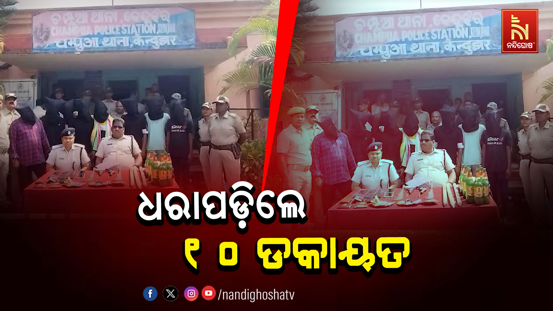କେନ୍ଦୁଝର: ପୋଲିସ ହାତରେ ଧରାପଡ଼ିଲେ ୧୦ ଜଣିଆ ଡକାୟତ ଗ୍ଯାଙ୍ଗ। କେନ୍ଦୁଝର ଚମ୍ପୁଆ ପୋଲିସ ହାତରେ ଧରାପଡିଛନ୍ତି ଏହି ଡକାୟତ ଗ୍ୟାଙ୍ଗ ସଦସ୍ୟ। ଗତକାଲି ରାତିରେ ଚମ୍ପୁଆ ପାଞ୍ଚ ପୋଖରିଆ ନିକଟ ଜଙ୍ଗଲରେ ଡକାୟତି ଯୋଜନାବେଳେ ମାଡ଼ି ବସିଥିଲା ପୋଲିସ। ସେମାନଙ୍କ ଠାରୁ ଗୋଟିଏ ବୋଲେରୋ, ଦୁଇଟି ବନ୍ଧୁକ, ୨ ଅଫୁଟା ଗୁଳି, ୨ କଟୁରୀ, ୱିକେଟ, ଲଙ୍କାଗୁଣ୍ଡ ପ୍ୟାକେଟ ଓ ମଦ ବୋତଲ ଆଦି ଜବତ ହୋଇଛି। ଏମାନେ ଚମ୍ପୁଆ ଓ ଝୁମ୍ପରା ଅଞ୍ଚଳରେ ଥିବା ଏଟିଏମରୁ ଲୁଟ ପାଇଁ ଯୋଜନା କରୁଥିଲେ। ପୂର୍ବରୁ ଏମାନଙ୍କ ନାଁରେ ଅନେକ ଅପରାଧିକ ମାମଲା ରହିଥିବା ଚମ୍ପୁଆ ଏସଡିପିଓ ବିଜୟ ମଲ୍ଲିକ ସୂଚନା ଦେଇଛନ୍ତି।ଡକାୟତ ଗ୍ୟାଙ୍ଗର ସମସ୍ତ ସଦସ୍ୟ ଚମ୍ପୁଆ ଓ ଆଖ ପାଖ ଅଂଚଳର। ଗିରଫ ୧୦ ଜଣଙ୍କ ମଧ୍ୟରେ ୨ ନାବାଳକ ଅଭିଯୁକ୍ତ ରହିଛନ୍ତି । ଅଭିଯୁକ୍ତ ସିପୁନ ବାରିକ ଏହି ଗ୍ୟାଙ୍ଗର ମୁଖ୍ୟ ବୋଲି ପୋଲିସ କହିଛି ।