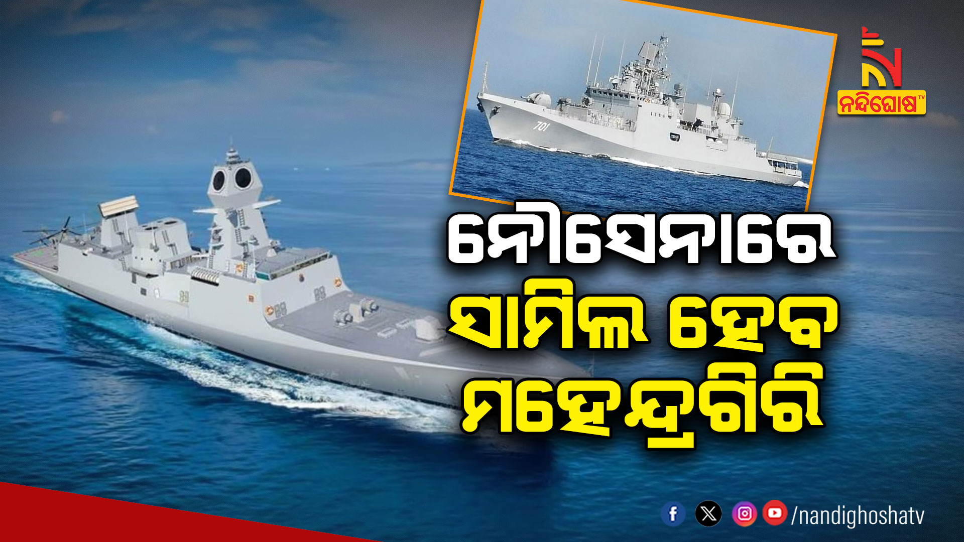 ମୁମ୍ବାଇ: ବଢ଼ିବ ଭାରତୀୟ ନୌସେନାର ସାମର୍ଥ୍ୟ ଓ ବଳ । ନୌସେନାରେ ସାମିଲ ହେବ ଯୁଦ୍ଧଜାହଜ ମହେନ୍ଦ୍ରଗିରି । ସ୍ବଦେଶୀ ଜ୍ଞାନକୌଶଳରେ ନିର୍ମାଣ କରାଯାଇଥିବା ସର୍ବଶେଷ ଯୁଦ୍ଧ ଜାହଜ ମହେନ୍ଦ୍ରଗିରି ଆସନ୍ତାକାଲି ଭାରତୀୟ ନୌସେନାରେ ସାମିଲ ହେବ । ଉପରାଷ୍ଟ୍ରପତି ଜଗଦ୍ଦୀପ ଧନକରଙ୍କ ପତ୍ନୀ ସୁଦେଶ ଧନକର ଏହାକୁ ମୁମ୍ବାଇସ୍ଥିତ ମାଜଗାଓଁ ଡକୟାର୍ଡରେ ଉଦଘାଟନ କରିବେ । ମାଜଗାଓଁ ଡକ୍ ୟାର୍ଡ ଓ ଜିଆରଏସଇର ମିଳିତ ଉଦ୍ୟମରେ ଯୁଦ୍ଧଜାହଜ ନୌସେନାର ୧୭A ପ୍ରକଳ୍ପ ଅଧିନରେ ନିର୍ମାଣ କରାଯାଇଛି । ଏହା ସର୍ବଶେଷ ଓ ସପ୍ତମ ଷ୍ଟିଲ୍ଥ ଯୁଦ୍ଧ ଜାହଜ । ଗତ ୧୭ ତାରିଖରେ ଷଷ୍ଠ ଯୁଦ୍ଧ ଜାହଜ ବିନ୍ଧ୍ୟଗିରି ଉଦଘାଟିତ ହୋଇଥିଲା । ଏହାରି ଭିତରେ ଭାରତ ନିର୍ମିତ ୬ଟି ଯୁଦ୍ଧଜାହଜ ନୌସେନାରେ ସାମିଲ ହୋଇସାରିଛି । ଭାରତ ଯୁଦ୍ଧ ଜାହଜ ନିର୍ମାଣରେ ଆତ୍ମନିର୍ଭର ହୋଇଥିବା କୁହାଯାଉଛି ।