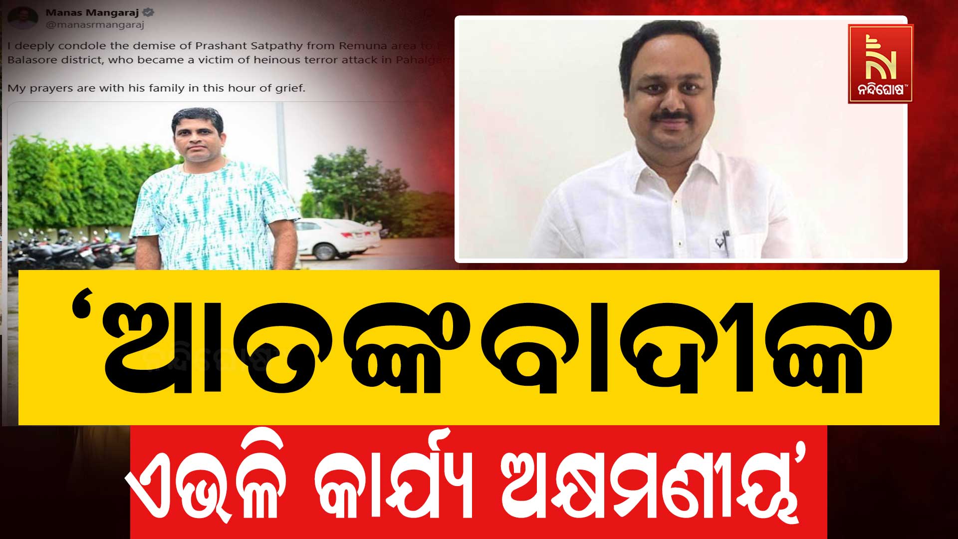 ଭୁବନେଶ୍ବର : ପେହେଲଗାଓଁ ଆତଙ୍କବାଦୀ ଆକ୍ରମଣରେ ବାଲେଶ୍ବରର ପ୍ରଶାନ୍ତ ଶତପଥୀଙ୍କ ମୃତ୍ୟୁରେ ଶୋକ ପ୍ରକାଶ କରିଛନ୍ତି ବିଜେଡି ସାଂସଦ ମାନସ ମଙ୍ଗରାଜ । ପ୍ରଶାନ୍ତଙ୍କ ପରିବାରକୁ ସେ ସମବେଦନା ଜଣାଇଛନ୍ତି । ଆତଙ୍କବାଦୀଙ୍କୁ କୌଣସି ଦୟା ଦେଖାଯିବା ଉଚିତ ନୁହେଁ ବୋଲି କହିଛନ୍ତି ମାନସ । ସେମାନଙ୍କୁ କଠୋର ହସ୍ତରେ ଦମନ କରାଯିବା ଉଚିତ । ଆତଙ୍କବାଦୀ ଆକ୍ରମଣର ଶିକାର ହୋଇଥିବା ମୃତକଙ୍କ ପାଇଁ ବି ଶୋକ ପ୍ରକାଶ କରିଛନ୍ତି ସାଂସଦ । ଆତଙ୍କବାଦୀଙ୍କ ଏଭଳି ନିଷ୍ଠୁର କାର୍ଯ୍ୟ ଅକ୍ଷମଣୀୟ। ଆତଙ୍କବାଦ ବିରୋଧ ଲଢେଇରେ ପୂରା ଦେଶ ଏକାଠି ହେବ ବୋଲି ସେ କହିଛନ୍ତି ।
