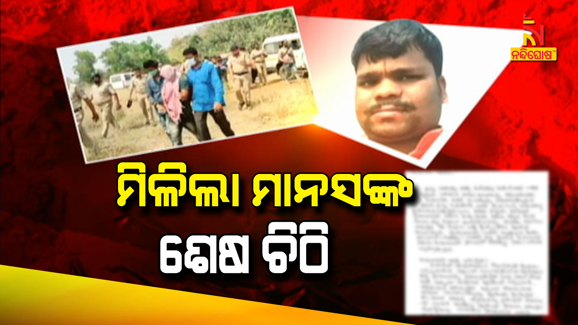 ମାନସଙ୍କୁ ହତ୍ୟା କରିବା ପୂର୍ବର ଏହି ଚିଠି ପାଇଥିଲେ ଦୟାଲ ଆଶ୍ରମର କେୟାର ଟେକର । କେୟାର ଟେକର ଝାଡୁ କଲା ବେଳେ ଏହି ଚିଠି ପାଇଥିଲେ । ମାନସଙ୍କ ହାତ ଲେଖା ଏହି ଚିଠି ପାଇବା ପରେ ଶର୍ମିଷ୍ଠାଙ୍କୁ ଦେଇଥିଲେ କେୟାର ଟେକର । ତେବେ କ୍ୟାମେରାମ୍ୟାନ ମାନସ ସ୍ବାଇଁଙ୍କ ହାତଲେଖା ଶେଷ ଚିଠି କୁଆଡେ ଗଲା ସେ ନେଇ ଖୋଳତାଡ଼ କରାଯିବ ବୋଲି କହିଛି ପୋଲିସ ।