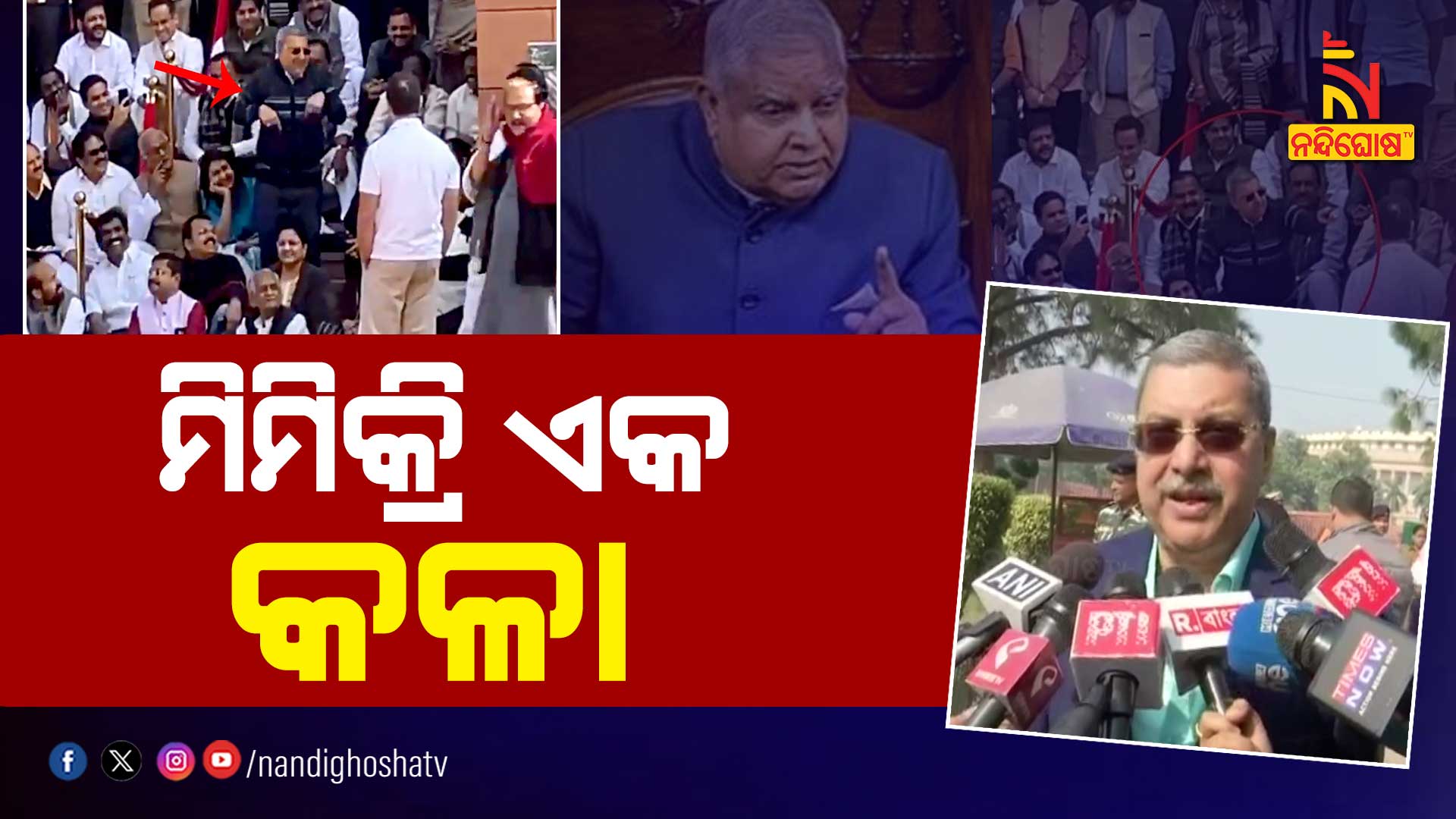 ମଙ୍ଗଳବାର ଦିନ ସଂସଦର ସିଡି ନିକଟରେ ବିରୋଧୀ ଦଳ ସାଂସଦଙ୍କ ନିଲମ୍ବନକୁ ନେଇ ବିରୋଧ ପ୍ରଦର୍ଶନ କରୁଥିବା ସମୟରେ ଏହି ଘଟଣା ଦେଖିବାକୁ ମିଳିଥିଲା । ତୃଣମୂଳ କଂଗ୍ରେସ ନେତା କଲ୍ୟାଣ ବାନାର୍ଜୀ ଉପରାଷ୍ଟ୍ରପତି ଜଗଦୀପ ଧନଖଡଙ୍କ ନକଲ କରିଥିଲେ । ମିମିକ୍ରି ସମୟର ଦୃଶ୍ୟକୁ କଂଗ୍ରେସ ନେତା ରାହୁଲ ଗାନ୍ଧୀ ଭିଡ଼ିଓରେ କଏଦ କରିଥିଲେ।