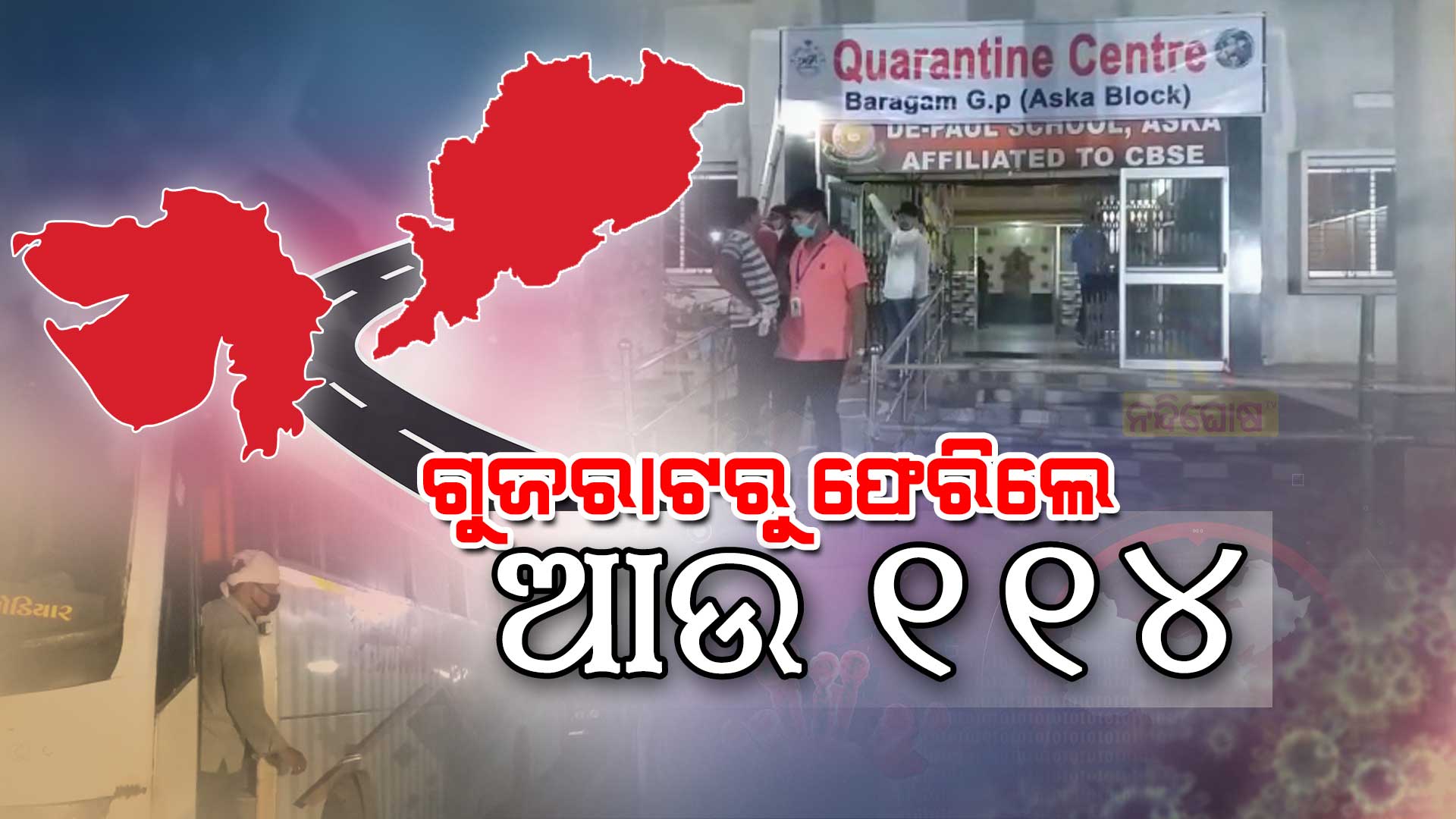 ଫେରିଥିବା ୧୧୪ ଜଣଙ୍କ ମଧ୍ୟରେ ୯୮ ଜଣ ପୁରୁଷ, ୧୦ ଜଣ ମହିଳା ଓ ୬ ଜଣ ଶିଶୁ ଅଛନ୍ତି । ସମସ୍ତଙ୍କ ପ୍ରାଥମିକ ଚିକିତ୍ସା ପରେ ସେମାନଙ୍କୁ ଆସିକା ଡିପଲ ସ୍କୁଲ କ୍ୱାରେଣ୍ଟାଇନ୍ ସେଣ୍ଟରରେ ରଖାଯାଇଛି । ବିଳମ୍ବିତ ରାତିରେ ୩ଟି ବସ୍ ଆସିକାର ବରଙ୍ଗା ପଞ୍ଚାୟତ କଲେଜ ଛକ ନିକଟରେ ପହଞ୍ଚିଥିଲା । ପହଞ୍ଚିବା ପରେ ବସ୍ ଗୁଡ଼ିକୁ ପ୍ରଶାସନ ପକ୍ଷରୁ ସାନିଟାଇଜ୍ କରାଯାଇଛି । ସମସ୍ତଙ୍କୁ ୧୪ ଦିନ କ୍ୱାରେଣ୍ଟାଇନରେ ରଖାଯିବ ।
