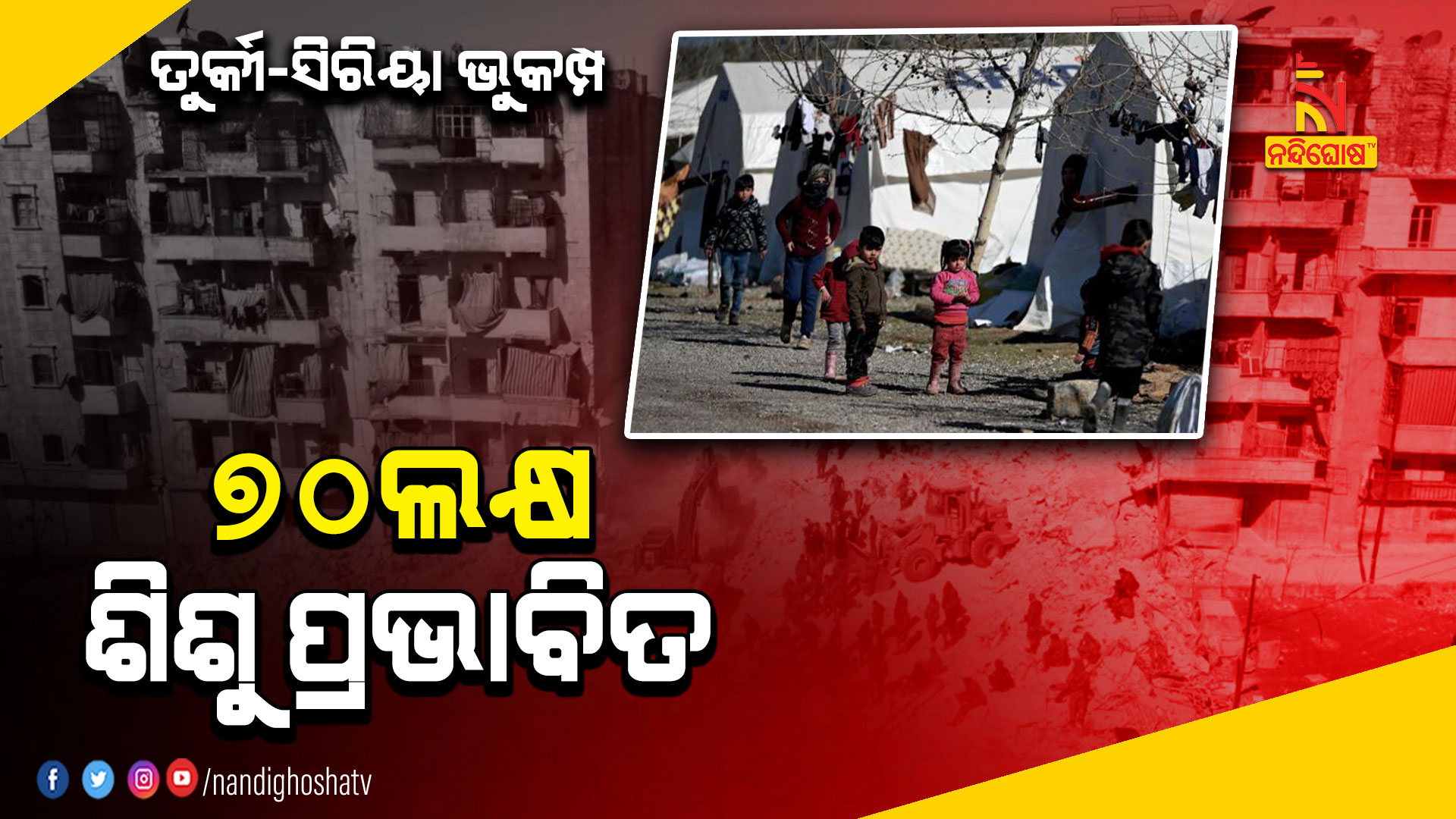 ୪୦ହଜାରରୁ ଅଧିକ ଲୋକଙ୍କ ମୃତ୍ୟୁ ହୋଇଥିବା ବେଳେ ପ୍ରଭାବିତ ହୋଇଛନ୍ତି ୭୦ଲକ୍ଷ ଶିଶୁ। କଅଁଳ ବୟସରେ ଅଜାଡ଼ି ହୋଇପଡ଼ିଛି ଦୁଃଖର ପାହାଡ଼। ଦୈବ ଦୁର୍ବିପାକରେ ସର୍ବସ୍ବ ହରାଇ ରାସ୍ତା, ମଲ, ସ୍କୁଲ, ମସଜିଦ, ବସ୍ ଷ୍ଟାଣ୍ଡ ଓ ବ୍ରିଜ ତଳେ ଦିନ କାଟୁଛନ୍ତି। ତୁର୍କୀରେ ପ୍ରାୟ ୪୬ଲକ୍ଷ ଶିଶୁ ପ୍ରଭାବିତ ହୋଇଥିବା ବେଳେ ସିରିୟାରେ ୨୫ଲକ୍ଷ ଶିଶୁ ପ୍ରଭାବିତ ହୋଇଛନ୍ତି ବୋଲି ୟୁନିସେଫର ମୁଖପାତ୍ର ଜେମ୍ସ ଏଲଡର କହିଛନ୍ତି।