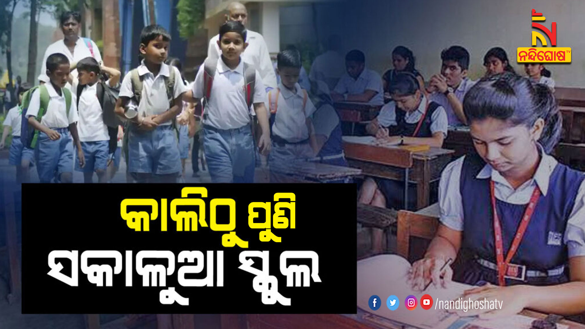 ଭୁବନେଶ୍ୱର: ଆସନ୍ତାକାଲିଠାରୁ ପୁଣି ସକାଳୁଆ ସ୍କୁଲ। ଏଥର ସମୟରେ ପରିବର୍ତ୍ତନ କରାଯାଇଛି। ସକାଳ ୭ଟାରୁ ସାଢ଼େ ୧୧ ବଦଳରେ ସାଢ଼େ ୬ରୁ ୧୧ଟା ଯାଏଁ କ୍ଲାସ ଚାଲିବ। ଗ୍ରୀଷ୍ମ ପ୍ରବାହ ସ୍ଥିତି ଦେଖି ଜିଲ୍ଲାପାଳମାନେ ଚାହିଁଲେ କ୍ଲାସ୍ ଟାଇମିଂରେ ପରିବର୍ତ୍ତନ କରିପାରିବେ। ଗତକାଲି ଏନେଇ ସ୍କୁଲ ଓ ଗଣଶିକ୍ଷା ବିଭାଗ ନିଷ୍ପତ୍ତି ନେଇଥିଲା । କାଲିଠୁ ରାଜ୍ୟ ସମସ୍ତ ସରକାରୀ ଓ ବେସରକାରୀ ସ୍କୁଲ ଖୋଲିବ । ସ୍କୁଲରେ ପାନୀୟ ଜଳ ଓ ଅନ୍ୟାନ୍ୟ ସୁବିଧା ଉପଲବ୍ଧ କରାଇବା ପାଇଁ ନିର୍ଦ୍ଦେଶ ଦିଆଯାଇଛି । ପ୍ରବଳ ଗ୍ରୀଷ୍ମ ପ୍ରବାହ ପାଇଁ ଏପ୍ରିଲ ୧୨ରୁ ୧୬ତାରିଖ ପର୍ଯ୍ୟନ୍ତ ସ୍କୁଲ ବନ୍ଦ ରହିଥିଲା ।