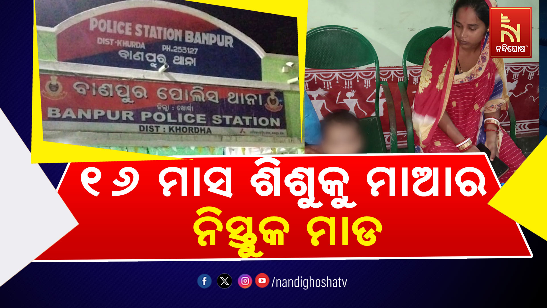 ବାଣପୁର : ୧୬ ମାସ ଶିଶୁକୁ ମାଆର ଅମାନୁଷିକ ଅତ୍ୟାଚାରର ଭିଡିଓ ଭାଇରାଲ । ଖୋର୍ଦ୍ଧା ଜିଲ୍ଲା ବାଣପୁର ଥାନା ଭଗବତୀ ସାହିର ଏହି ଘଟଣା ବୋଲି ସୂଚନା ରହିଛି । ଜନ୍ମିତା ମାଆ ଘଟାଇଛି ଏହି କାଣ୍ଡ l ମାଆ ହୋଇ ୧୬ ମାସର ଶିଶୁ କନ୍ୟାକୁ ନିସ୍ତୁକ ମାଡ଼ ମାରୁଥିବା ଦେଖିବାକୁ ମିଳିଛି l ଶିଶୁକୁ ମାଡ଼ ମାରିବାର ଭିଡିଓ କରି ଓଡ଼ିଶା ବାହାରେ ରହୁଥିବା ସ୍ୱାମୀ ପାଖକୁ ପଠାଇଛି ସ୍ତ୍ରୀ । ମହିଳା ଜଣକ ଗମ୍ଭାରୀମୁଣ୍ଡା ନିକଟସ୍ଥ ହରିଚନ୍ଦନପୁର ଗାଁର ପ୍ରମୋଦ ନାୟକଙ୍କ ସ୍ତ୍ରୀ ବନିତା ନାୟକ l ପ୍ରମୋଦ କେରଳରେ କାମ କରୁଥିବା ବେଳେ ସ୍ତ୍ରୀ ଘର ଛାଡି ବାଣପୁରର ଭଗବତୀ ସାହିରେ ଭଡାଘରେ ରହୁଥିବା ପରିବାର ଲୋକେ ଅଭିଯୋଗ କହିଛନ୍ତି l କୌଣସି କାରଣ ନେଇ ସେଠାରେ ୧୬ମାସର ଶିଶୁକୁ ତଣ୍ଟି ଚିପି ବେକରେ ଗୋଡ ଥୋଇ ମାଡ଼ ମାରିଛି ସ୍ତ୍ରୀ । ଅସହ୍ୟ ମରଣାତ୍ମକ ଆକ୍ରମଣ କରିଵା ସହ ସ୍ୱାମୀ ପାଖକୁ ପଠାଇଛି ଭିଡିଓ l ଏନେଇ ଛୁଆର ବାପ ତାଙ୍କ ପରିବାରକୁ ଜଣାଇବା ପରେ ଛୁଆକୁ ସୁରକ୍ଷା ଦେବା ପାଇଁ ବଡ଼ବାପା ମାଧବ ନାୟକ ଓ ପରିବାରର ସମସ୍ତ ଲୋକ ବାଣପୁର ଥାନାରେ ଅଭିଯୋଗ କରିଛନ୍ତି l ବାଣପୁର ପୋଲିସ ଅଭିଯୋଗ ପାଇ ଶିଶୁ କନ୍ୟା ସ୍ମୁତି ନାୟକକୁ ଉଦ୍ଧାର କରିବା ସହ ମାଆ ବନିତା ନାୟକକୁ ଥାନାରେ ଅଟକ ରଖି ପଚରା ଉଚରା କରୁଛି l