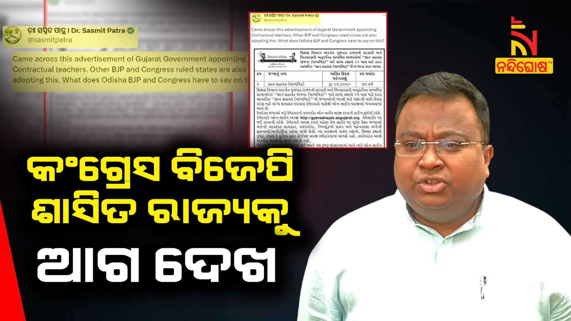 ଜ୍ଞାନ ସହାୟକ ନିଯୁକ୍ତି ନେଇ ଏହି ବିଜ୍ଞାପନ ପ୍ରକାଶ ପାଇଛି । ଯଦି ଗୁଜରାଟ ସରକାର ଚୁକ୍ତିଭିତ୍ତିକ ନିଯୁକ୍ତି କରିପାରୁଛନ୍ତି, ତେବେ ଓଡ଼ିଶା ସରକାରଙ୍କ ଚୁକ୍ତିଭିତ୍ତିକ ଶିକ୍ଷକ ନିଯୁକ୍ତିରେ ରାଜ୍ୟ ବିଜେପି ଓ କଂଗ୍ରେସ କାହିଁକି ପ୍ରଶ୍ନ ଉଠାଉଛନ୍ତି । କେବଳ ଗୁଜରାଟ ସରକାର ନୁହନ୍ତି, ବିଜେପି ଓ କଂଗ୍ରେସ ଶାସିତ ରାଜ୍ୟଗୁଡ଼ିକରେ ମଧ୍ୟ ଏଭଳି ଠିକା ନିଯୁକ୍ତି କରାଯାଉଛି।