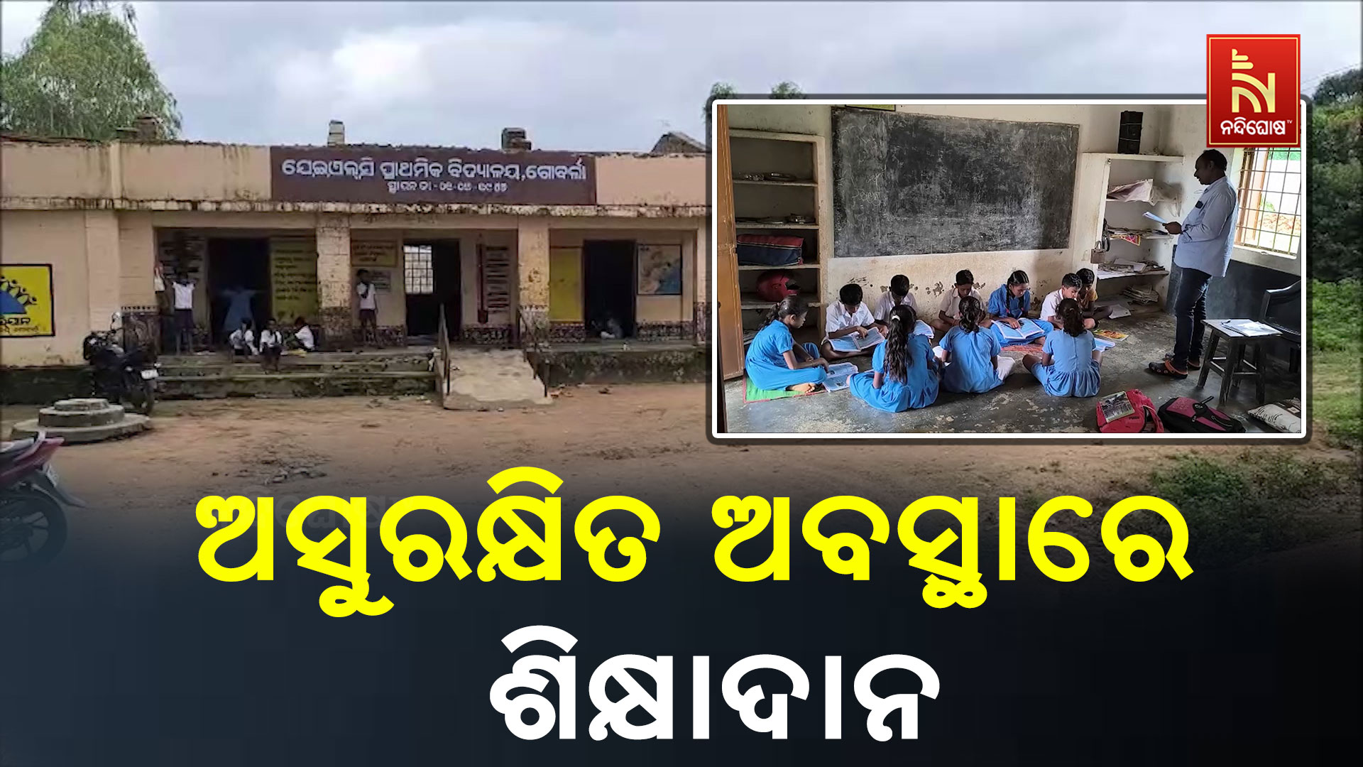 ନନ୍ଦିଘୋଷ ବ୍ୟୁରୋ: ଅସୁରକ୍ଷିତ ଶ୍ରେଣୀ ଗୃହରେ ଚାଲିଛି ପାଠପଢା। ନବରଙ୍ଗପୁର ଜିଲ୍ଲା ପାପଡାହାଣ୍ଡିରେ ଶ୍ରେଣୀଗୃହ ଅଭାବରୁ ପ୍ରାୟ ସମୟ ବାରଣ୍ଡାରେ ହେଉଛି ପାଠପଢା। ଗୋବର୍ଲା ଯେଇଏଲସି ପ୍ରାଥମିକ ବିଦ୍ୟାଳୟର ଶୋଚନୀୟ ଅବସ୍ଥା। ସ୍କୁଲରେ ପ୍ରଥମରୁ ପଞ୍ଚମ ଶ୍ରେଣୀ ପର୍ଯ୍ୟନ୍ତ ୫୦ଜଣ ଛାତ୍ରଛାତ୍ରୀ ଅଧ୍ୟୟନ କରୁଥିବା ବେଳେ ମାତ୍ର ୨ ଜଣ ଶିକ୍ଷକ ଅଛନ୍ତି। ସ୍କୁଲ ମରାମତି ହେଉନଥିବାରୁ ଅସନ୍ତୋଷ ଅଭିଭାବକ।