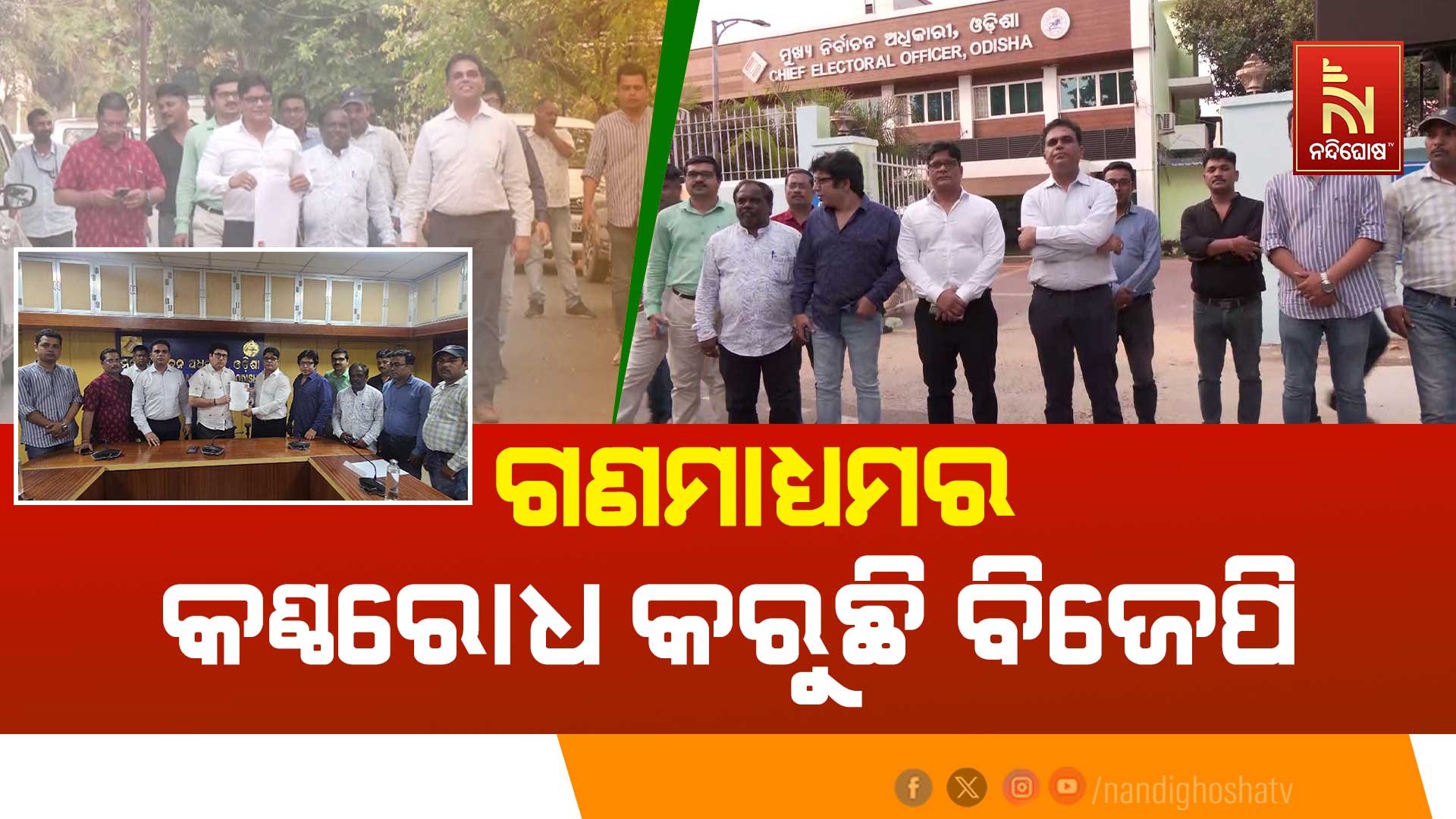ଆଜି ନନ୍ଦିଘୋଷ ସିଇଓ ଜବର୍ ସିଂ ପନ୍ୱର୍, ମୁଖ୍ୟ ସମ୍ପାଦକ ଶିଶିର ଭଟ୍ଟମିଶ୍ର, ଇନିପୁଟ ହେଡ ଅଜିତ ଦାସ, ଆଉଟପୁଟ ହେଡ୍ ରଙ୍ଗାଧର ପଣ୍ଡା, ଇନପୁଟ କୋର୍ଡିନେଟର ପାର୍ଥ ସାରଥୀ ରାଉତ, ପ୍ରୋଗ୍ରାମିଙ୍ଗ ହେଡ ସରତ ମହାପାତ୍ର, ଭିଜୁଆଲ ଏଡିଟିଙ୍ଗ ହେଡ ଗୁରୁ ଭାଇ, ବରିଷ୍ଠ ସାମ୍ବାଦିକ ମାନସ ମହାପାତ୍ର, କ୍ୟାମେରା ହେଡ଼ ଭବାନୀ ମଲିକ, କ୍ୟାମେରା ମ୍ୟାନ, ପଦ୍ମନାଭ, ଦିନଭଞ୍ଜନଙ୍କ ସହ ସକାଳର ସିଇଓ ସୁବ୍ରତ ଦାସ ସିଇଓ ଙ୍କୁ ଭେଟି ନିଜ ଅଭିଯୋଗ ପ୍ରଦାନ କରିଛନ୍ତି। ବିଜେପିର ସାଧାରଣ ସମ୍ପାଦକ ଯତୀନ ମହାନ୍ତି ଓ ଆକ୍ରମଣରେ ସହଯୋଗ କରିଥିବା ସମସ୍ତ କର୍ମୀ ମାନଙ୍କ ଉପରେ ଦୃଢ଼ କାର୍ଯ୍ୟାନୁଷ୍ଠାନ ଗ୍ରହଣ କରାଯାଉ। ଏହାସହ ଆଗକୁ ଅବାଧ ନିର୍ବାଚନରେ କିଭଳି ସମସ୍ତ ସୁରକ୍ଷା ମିଳିବ ଏନେଇ ମୁଖ୍ୟ ନିର୍ବାଚନ ଅଧିକାରୀଙ୍କୁ ନିବେଦନ କରାଯାଇଛି।