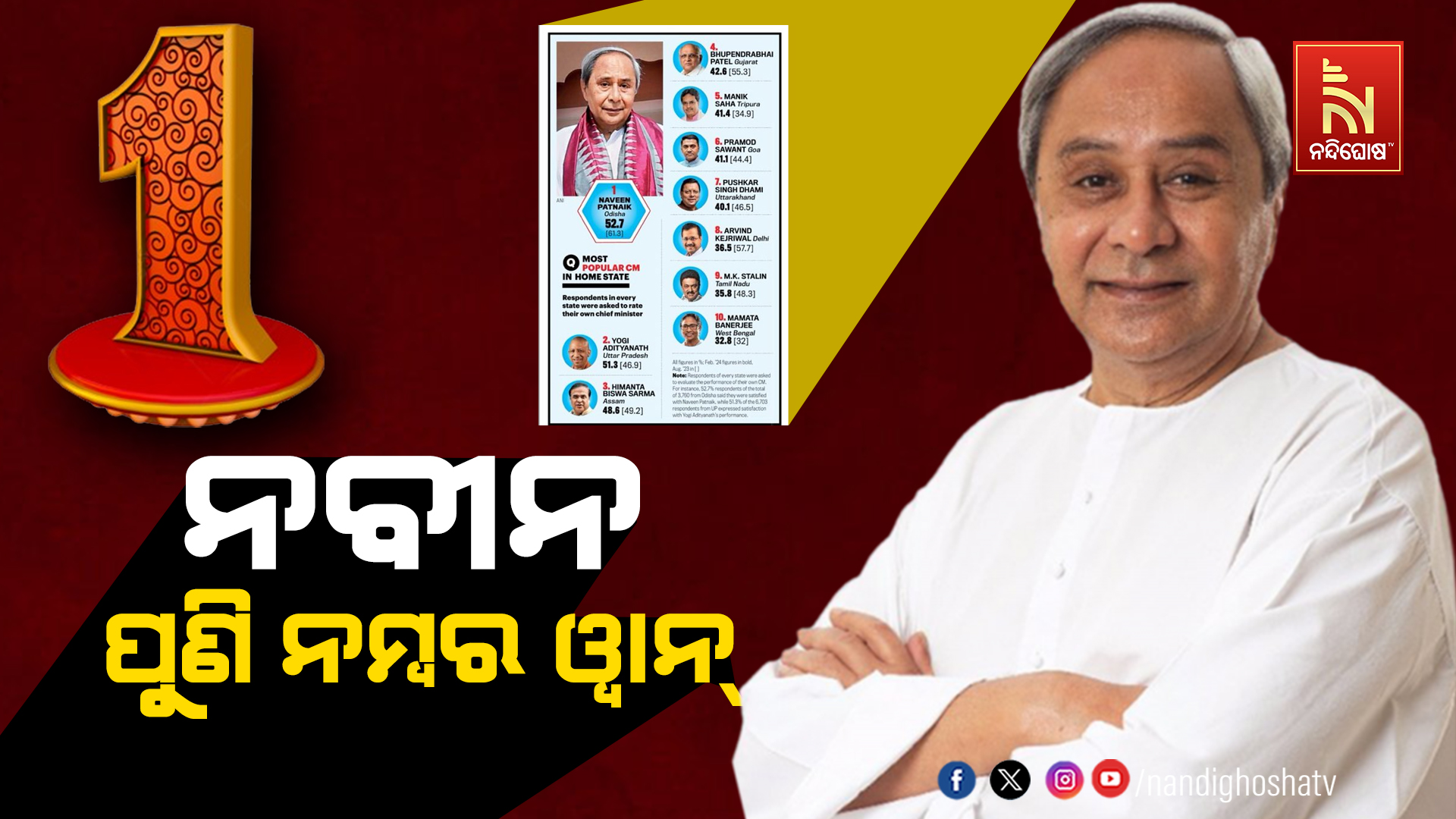 ବ୍ୟୁରୋ ରିପୋର୍ଟ: ପୁଣି ଥରେ ସବୁଠାରୁ ଲୋକପ୍ରିୟ ମୁଖ୍ୟମନ୍ତ୍ରୀ ହେଲେ ନବୀନ ପଟ୍ଟନାୟକ। ଲୋକପ୍ରିୟ ମୁଖ୍ୟମନ୍ତ୍ରୀ ତାଲିକାରେ ସାରା ଦେଶରେ ଏକ୍ ନମ୍ବରରେ ଅଛନ୍ତି ଓଡିଶା ମୁଖ୍ୟମନ୍ତ୍ରୀ ନବୀନ ପଟ୍ଟନାୟକ। ଇଣ୍ଡିଆ ଟୁଡେ ପକ୍ଷରୁ ହୋଇଥିବା ମୁଡ ଅଫ୍ ଦି ନେସନ ଓପିନିଅନ୍ ପୋଲ ସର୍ଭେରେ ନବୀନ ଅନ୍ୟ ରାଜ୍ୟର ମୁଖ୍ୟମନ୍ତ୍ରୀଙ୍କ ଠାରୁ ସବୁଠୁ ଆଗରେ ଅଛନ୍ତି ।