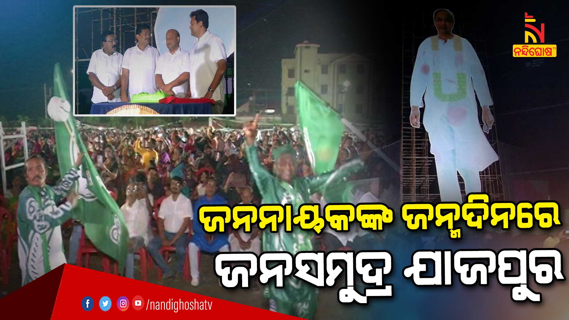 ଯାଜପୁର: ୮୦ ଫୁଟର ବିଶାଳ ପୋଷ୍ଟର, ଲେଜର ଲାଇଟର ଚକମକି । ବାଣ ଫୁଟୁଛି, ବାଜା ବାଜୁଛି । ଏକଦମ ରଙ୍ଗାରଙ୍ଗ ପରିବେଶ । ଜନସମୁଦ୍ର ଯାଜପୁର ଜିଲ୍ଲାର ବାଳାଶ୍ରମ ପଡ଼ିଆ l ସମସ୍ତଙ୍କ ମନରେ ଉତ୍ସାହ, ଆଖିରେ ଭଲପାଇବା । ମୁଖ୍ୟମନ୍ତ୍ରୀ ନବୀନ ପଟ୍ଟନାୟକଙ୍କ ଜନ୍ମଦିନକୁ ଏକଦମ ନିଆରା ଢଙ୍ଗରେ ପାଳିଛନ୍ତି ଯାଜପୁରବାସୀ । 25ବର୍ଷ ସେବାର ସାଧକ ତଥା ଦେଶର ଏକ ନମ୍ବର ମୁଖ୍ୟମନ୍ତ୍ରୀ ନବୀନ ପଟ୍ଟନାୟକ ।