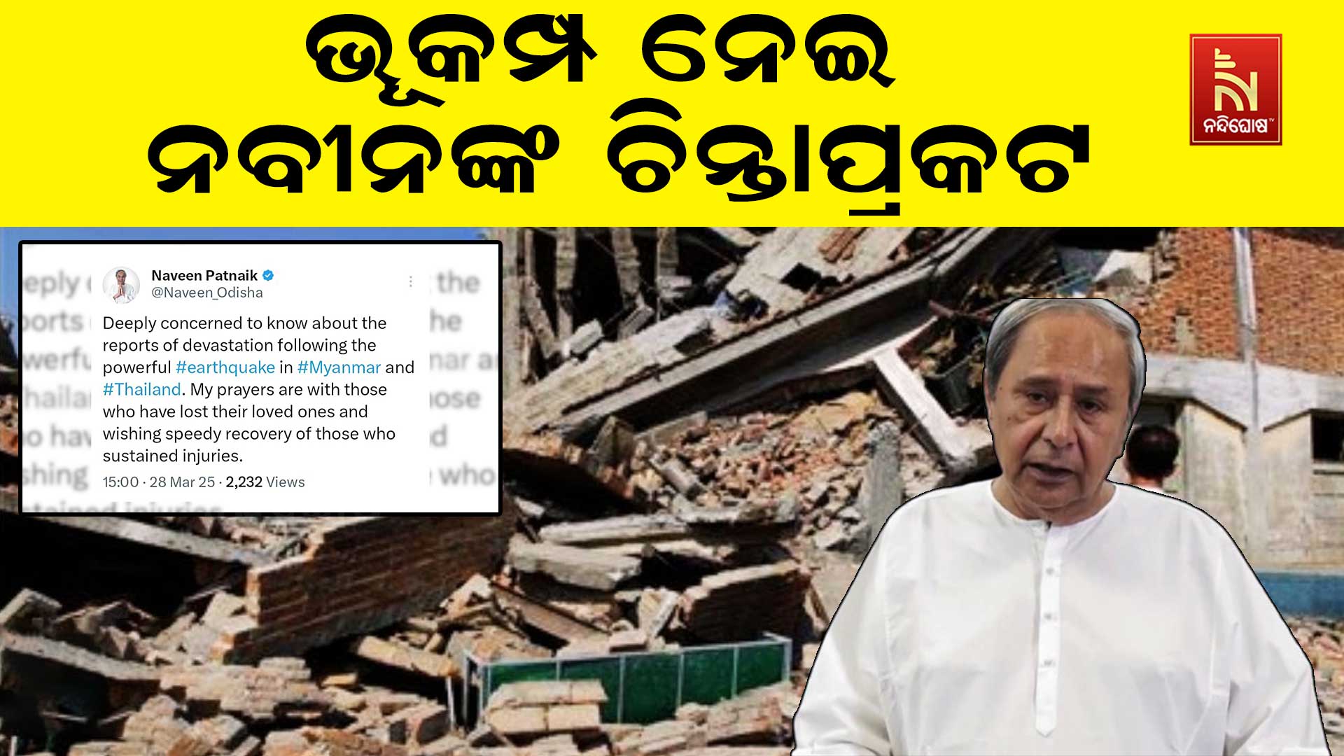 ନୂଆଦିଲ୍ଲୀ: ମିଆଁମାର ଏବଂ ଥାଇଲାଣ୍ଡରେ ଆସିଥିବା ଭୟଙ୍କର ଭୂକମ୍ପକୁ ନେଇ ଚିନ୍ତା ପ୍ରକଟ କରିଛନ୍ତି ପୂର୍ବତନ ମୁଖ୍ୟମନ୍ତ୍ରୀ ତଥା ବିରୋଧୀ ଦଳ ନେତା ନବୀନ ପଟ୍ଟନାୟକ। ଭୂକମ୍ପରେ ଜୀବନ ହରାଇଥିବା ମୃତକଙ୍କ ପରିଜନଙ୍କ ପ୍ରତି ଗଭୀର ସମବେଦନା ଜ୍ଞାପନ ସହ ଆହତଙ୍କ ଆଶୁ ଆରୋଗ୍ୟ କାମନା କରିଛନ୍ତି ବିଜେଡି ସୁପ୍ରିମୋ ନବୀନ ପଟ୍ଟନାୟକ।